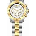 Часы оснащены функцией хронографаХронографФункция позволяет измерять отрезки времени с особой точностью: часы, минуты, секунды. Верным признаком хронографа является наличие на циферблате 3 дополнительных окошек-счётчиков. и тахиметрТахиметрРазмеченная шкала, располагается на ободке или безеле часов. Тахиметр позволяет рассчитать скорость на определённом участке пути, расстояние измеряется в километрах или милях., что позволяет точно измерять скорость и время различных событий. Циферблат защищен прочным минеральным стекломМинеральное стеклоМинеральное стекло представляет собой искусственно выращенный минерал кварца. Такое стекло отличается особой устойчивостью к повреждениям и царапинам. Уступает по некоторым качествам сапфировому стеклу., обеспечивающим высокую устойчивость к царапинам. Завинчивающаяся рифленая заводная головка с защитой гарантирует надежную герметизацию механизма, а завинчивающаяся задняя крышка добавляет дополнительную защиту от внешних воздействий. БезельБезельВнешний ободок, закрепляющий стекло. В спортивных часах так называется поворотное кольцо с делениями на циферблате, выполняет роль таймера – замеряет отрезки времени на шкале. Неподвижный безель – элемент декора. Однонаправленно вращающийся безель на дайверских часах позволяет фиксировать моменты погружения и выныривания на поверхность. с IP-покрытиемIP-покрытиеМетод ионного напыления. Демонстрирует повышенную устойчивость к истиранию, окислению и химическим веществам. Под воздействием высокого давления и температуры около 1500°C молекулы металла надёжно соединяются с частицами корпуса часов..