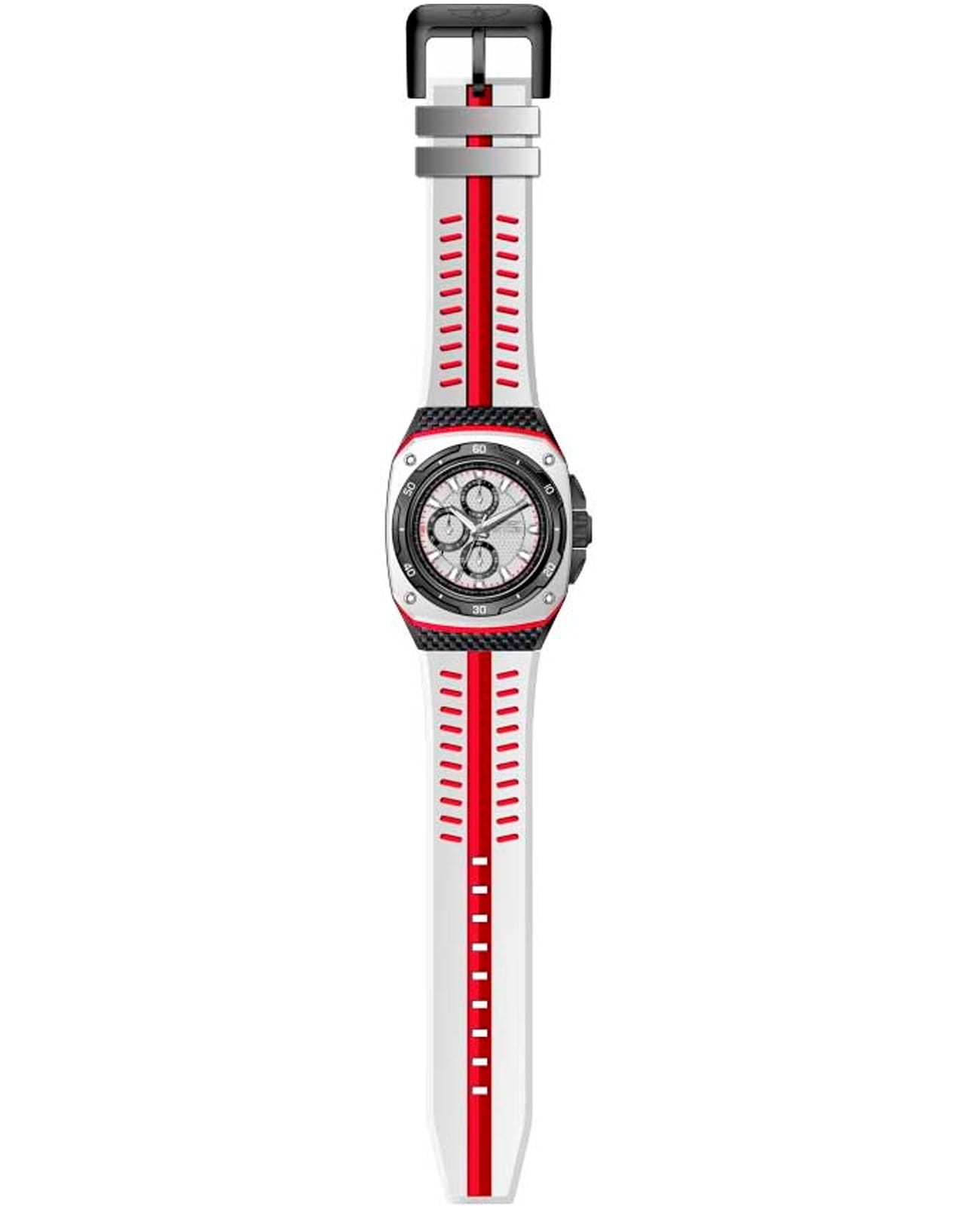 Мужские наручные часы-хронографХронографФункция позволяет измерять отрезки времени с особой точностью: часы, минуты, секунды. Верным признаком хронографа является наличие на циферблате 3 дополнительных окошек-счётчиков. Invicta IN46109 из коллекции Speedway сочетают в себе спортивный дизайн и надежность современных технологий. Модель обладает круглым корпусом диаметром 46 мм, изготовленным из стали с IP-покрытиемIP-покрытиеМетод ионного напыления. Демонстрирует повышенную устойчивость к истиранию, окислению и химическим веществам. Под воздействием высокого давления и температуры около 1500°C молекулы металла надёжно соединяются с частицами корпуса часов., что обеспечивает привлекательный внешний вид и устойчивость к коррозии . Ремешок выполнен из силикона шириной 3 см, гарантируя комфортное ношение . Циферблат с метками в виде штрихов оснащен люминесцентным покрытиемЛюминесцентное покрытиеПозволяет считывать показания времени в темноте. Производители наносят на стрелки, часовые индексы, безель или поверхность циферблата светонакопительный состав, дающий холодное свечение., что обеспечивает хорошую видимость в темноте . Для защиты используется минеральное стеклоМинеральное стеклоМинеральное стекло представляет собой искусственно выращенный минерал кварца. Такое стекло отличается особой устойчивостью к повреждениям и царапинам. Уступает по некоторым качествам сапфировому стеклу., обеспечивающее прочную защиту от царапин . Часы работают на кварцевом механизме, что гарантирует точное время без необходимости подзаводки. Модель также является хронографомХронографФункция позволяет измерять отрезки времени с особой точностью: часы, минуты, секунды. Верным признаком хронографа является наличие на циферблате 3 дополнительных окошек-счётчиков., оснащенным функцией секундомераСекундомерСекундоме́р — прибор, способный измерять интервалы времени с точностью до долей секунды., делая ее идеальной для активного образа жизни . Водонепроницаемость часов достигает 50 метров (5 атмосфер), что позволяет использовать их во время мытья рук или дождя, однако не рекомендуется для плавания или дайвинга .