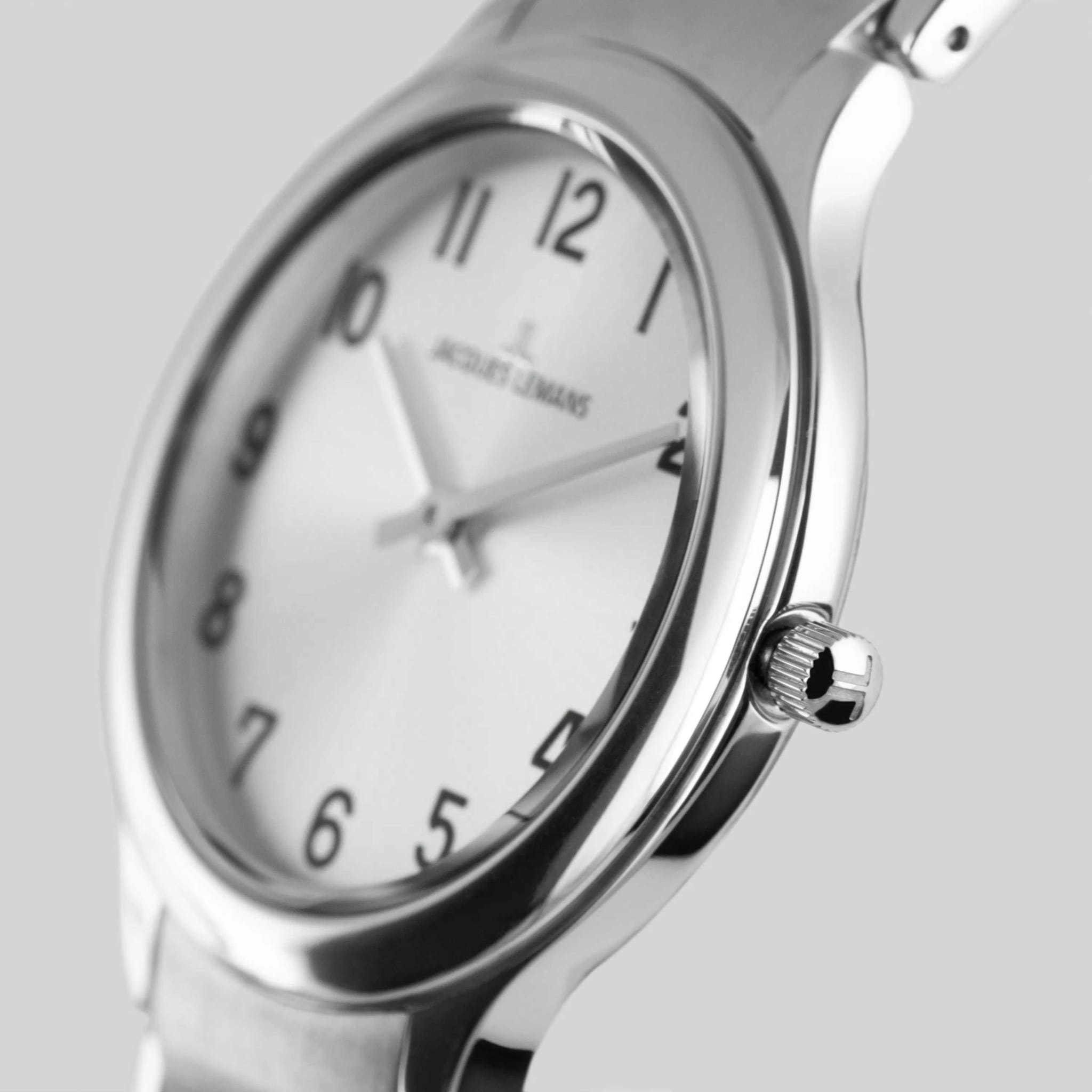 Женские наручные часы Jacques Lemans 1-2208C представляют собой стильный аксессуар, отражающий идеальное сочетание современного дизайна, надёжности и функциональности. Кварцевый механизм высокой точности. Корпус из нержавеющей стали диаметром 30 мм идеально сбалансирован и элегантен. Метки в виде арабских цифр. Ударопрочное минеральное стеклоМинеральное стеклоМинеральное стекло представляет собой искусственно выращенный минерал кварца. Такое стекло отличается особой устойчивостью к повреждениям и царапинам. Уступает по некоторым качествам сапфировому стеклу. Crystex защищает циферблат от царапин. Стальной браслет на раскладной застёжкеРаскладная застёжкаТакой тип застёжки используется только на браслетах из металла. Она никогда не раскрывается полностью, происходит разделение на 2 и более частей. Раскладывающая застёжка снизит вероятность потери часов к минимуму. обеспечивает комфортное ношение. Водозащита 50 метров позволит защитить корпус от случайных брызг или капель дождя. Это аксессуар для женщины, который ценит классический стиль и минимализм.