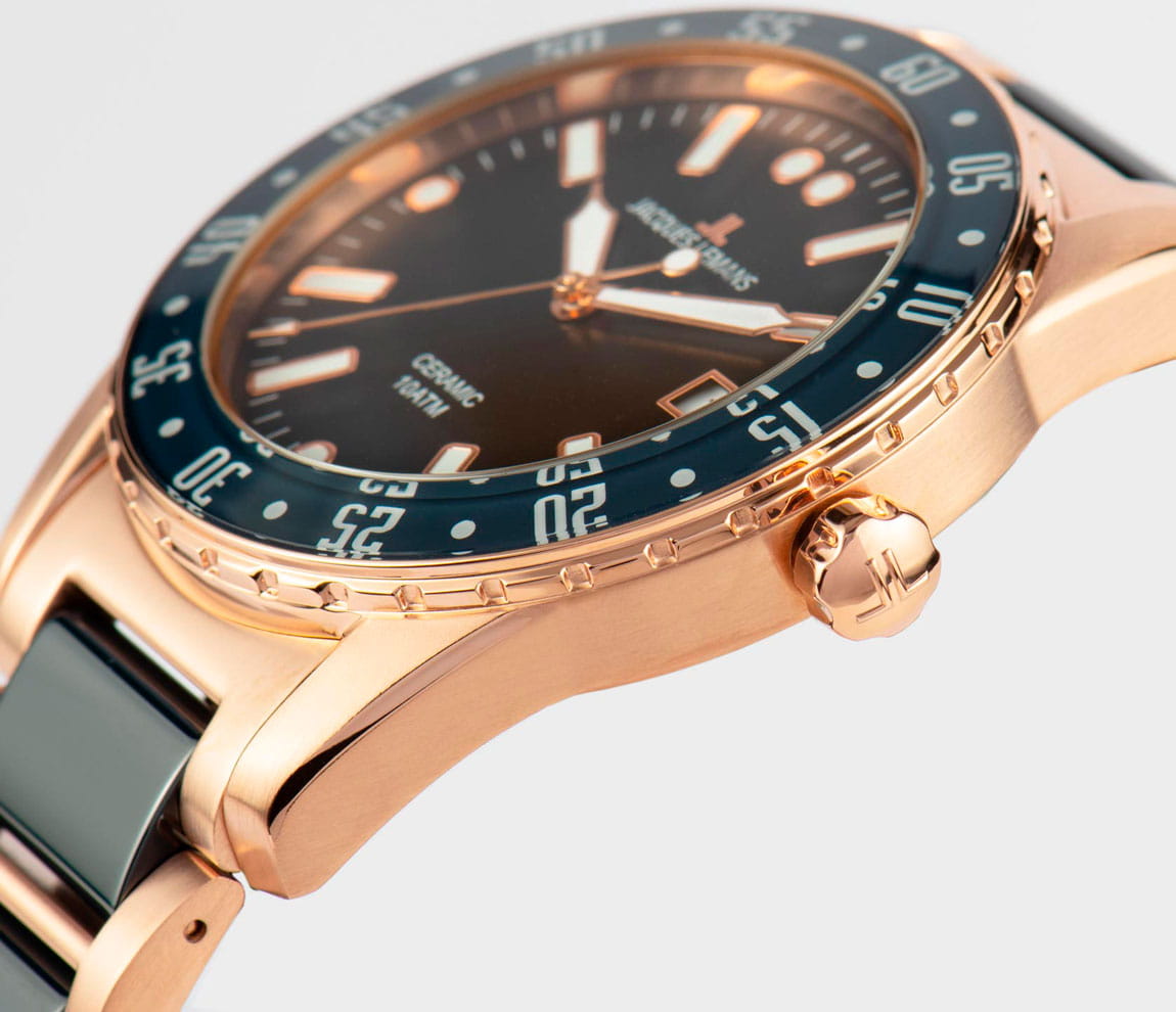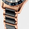 Часы с явными спортивными акцентами могут выглядеть элегантно. Крупный корпус диаметром 42 мм сделан из нержавеющей стали с PVD-покрытиемPVDУльтратонкое покрытие наносится в технике вакуумного напыления, сочетает в себе нитрид титана особой прочности со слоем золота или оксида хрома. Несёт в себе декоративную или защитную функцию., на широкий безельБезельВнешний ободок, закрепляющий стекло. В спортивных часах так называется поворотное кольцо с делениями на циферблате, выполняет роль таймера – замеряет отрезки времени на шкале. Неподвижный безель – элемент декора. Однонаправленно вращающийся безель на дайверских часах позволяет фиксировать моменты погружения и выныривания на поверхность. вынесена дополнительная индикация. Точный кварцевый механизм отвечает за движение хорошо читаемых стрелок, покрытых люминесцентным составомЛюминесцентное покрытиеПозволяет считывать показания времени в темноте. Производители наносят на стрелки, часовые индексы, безель или поверхность циферблата светонакопительный состав, дающий холодное свечение.. Таким же образом выделены и индексы, поэтому время по этим часам легко определить даже в темноте. В положении «3 часа» находится окошко даты. Еще одна спортивная составляющая — повышенная водостойкость, равная 10 атмосфер: в часах можно плавать. Вместе с этим, модель идеально впишется и в классический образ, и в повседневный. Особая деталь — звенья браслета из высокотехнологичной керамикиВысокотехнологичная керамикаИнновационный запатентованный Rado материал с гладкой или матовой поверхностью. Керамика за счёт кристаллической структуры обладает повышенной устойчивостью от возникновения царапин. Материал способен принимать температуру тела человека, обеспечивая невероятный комфорт при ношении. черного цвета, в тон циферблату. Этот материал удобно носить даже в мороз: он быстро нагревается до комфортной температуры тела. К тому же, керамика стойко сопротивляется появлению микроцарапин. На браслет установлена раскладная застёжкаРаскладная застёжкаТакой тип застёжки используется только на браслетах из металла. Она никогда не раскрывается полностью, происходит разделение на 2 и более частей. Раскладывающая застёжка снизит вероятность потери часов к минимуму..