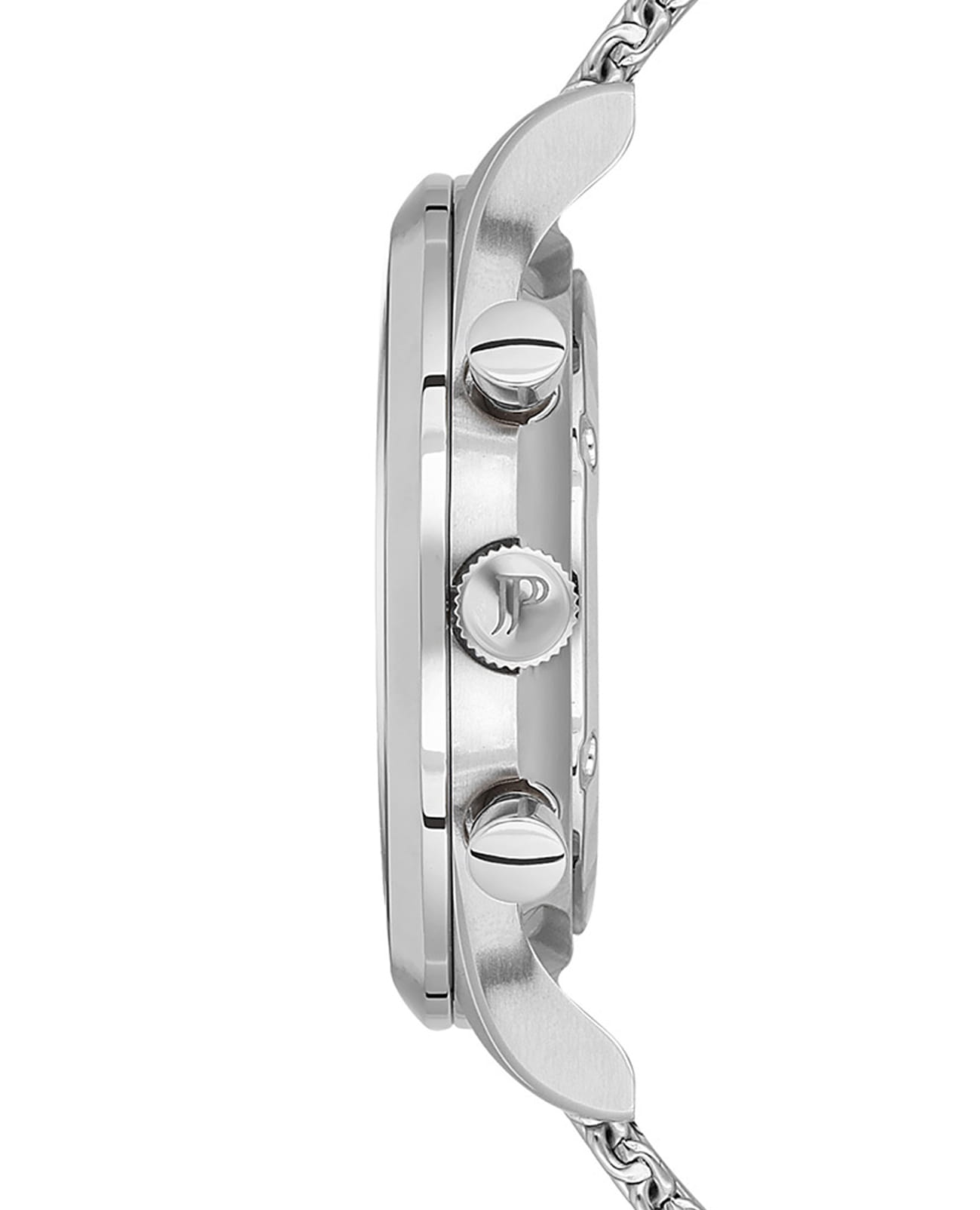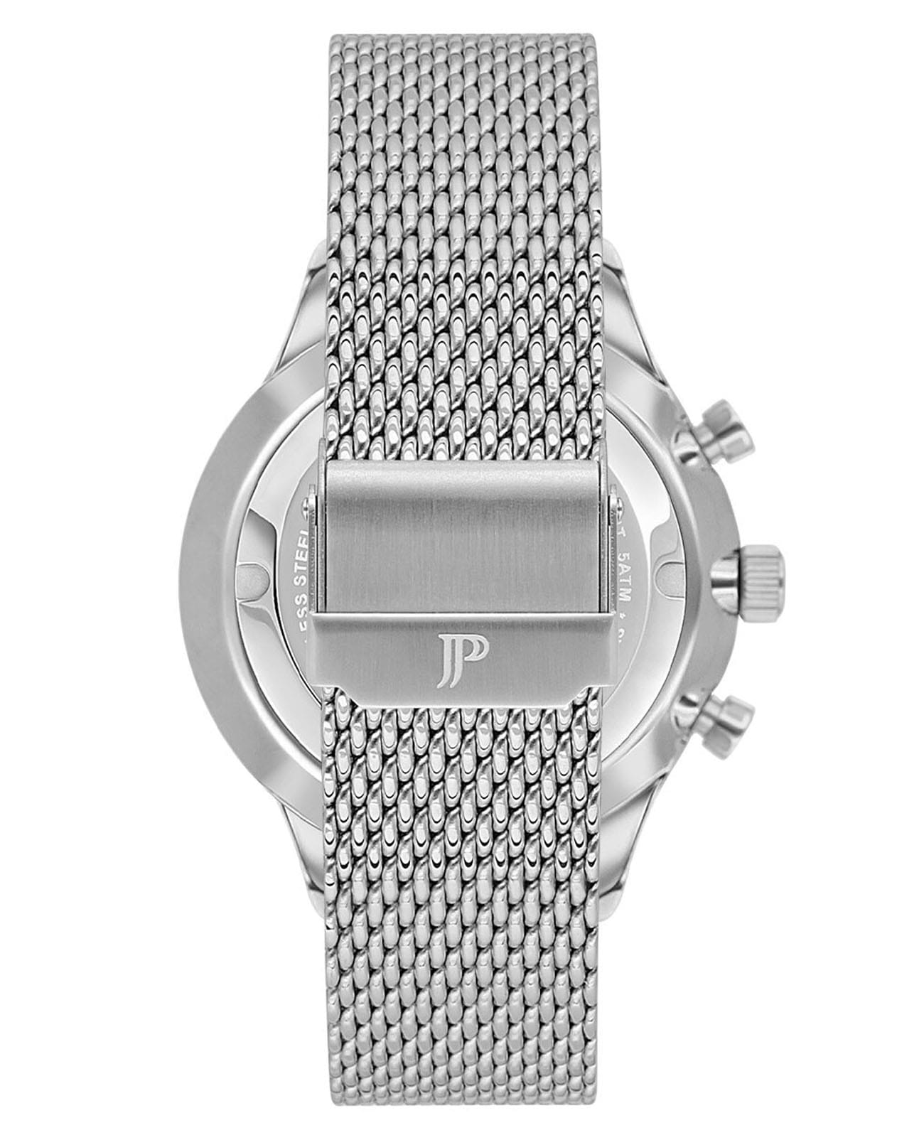 Швейцарские мужские часы-хронографХронографФункция позволяет измерять отрезки времени с особой точностью: часы, минуты, секунды. Верным признаком хронографа является наличие на циферблате 3 дополнительных окошек-счётчиков. Jacques Philippe Gallant JPQGC0312X6LB, кварцевый механизм с высокой точностью. Сапфировое стеклоСапфировое стеклоПрочный и надёжный материал из кристалла сапфира синтетического происхождения, характеризующийся особой твёрдостью и устойчивостью к царапинам и повреждениям. устойчивое к появлению царапин, обладающее высокой прозрачностью. Корпус часов изготовлен из нержавеющей стали. На циферблате три дополнительных индикатора. Стрелки с люминесцентным покрытиемЛюминесцентное покрытиеПозволяет считывать показания времени в темноте. Производители наносят на стрелки, часовые индексы, безель или поверхность циферблата светонакопительный состав, дающий холодное свечение.. Окошко даты находится между 4 и 5 часами. Класс водозащиты: 50 метров, позволит защитить корпус от случайных брызг или капель дождя. Стальной браслет миланского плетения на раскладном замкеРаскладной замокДанный вариант застежки используется только на часах с металлическим браслетом. Отличительная особенность такого крепления в том, что длина браслета становится универсальной и вы можете самостоятельно отрегулировать нужный вам размер – застежка просто двигается по браслету часов..
