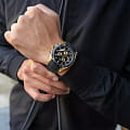 Мужские швейцарские часы-хронографХронографФункция позволяет измерять отрезки времени с особой точностью: часы, минуты, секунды. Верным признаком хронографа является наличие на циферблате 3 дополнительных окошек-счётчиков. Jaguar Special Edition J691/2. Кварцевый швейцарский калибр Ronda 5030.D. Сапфировое стеклоСапфировое стеклоПрочный и надёжный материал из кристалла сапфира синтетического происхождения, характеризующийся особой твёрдостью и устойчивостью к царапинам и повреждениям. устойчивое к мелким механическим повреждениям. Корпус часов изготовлен из нержавеющей стали с PVD-покрытиемPVDУльтратонкое покрытие наносится в технике вакуумного напыления, сочетает в себе нитрид титана особой прочности со слоем золота или оксида хрома. Несёт в себе декоративную или защитную функцию.. Стрелки и метки с люминесцентным покрытиемЛюминесцентное покрытиеПозволяет считывать показания времени в темноте. Производители наносят на стрелки, часовые индексы, безель или поверхность циферблата светонакопительный состав, дающий холодное свечение.. Окошко даты находится в положении между «3» и «6 часами». Класс водозащиты: 100 метров, позволит плавать, нырять и заниматься другими водными видами спорта. Силиконовый ремешок на стандартной застёжке. БезельБезельВнешний ободок, закрепляющий стекло. В спортивных часах так называется поворотное кольцо с делениями на циферблате, выполняет роль таймера – замеряет отрезки времени на шкале. Неподвижный безель – элемент декора. Однонаправленно вращающийся безель на дайверских часах позволяет фиксировать моменты погружения и выныривания на поверхность. с PVD-покрытиемPVDУльтратонкое покрытие наносится в технике вакуумного напыления, сочетает в себе нитрид титана особой прочности со слоем золота или оксида хрома. Несёт в себе декоративную или защитную функцию..