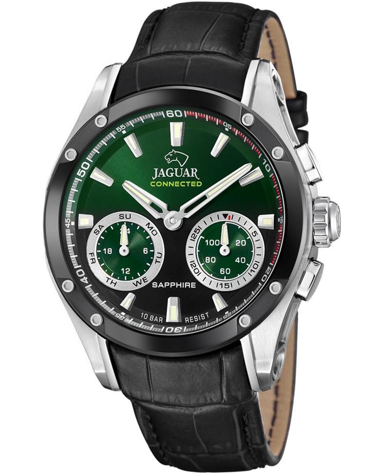 Мужские швейцарские часы Jaguar Connected J958/2. Сапфировое стеклоСапфировое стеклоПрочный и надёжный материал из кристалла сапфира синтетического происхождения, характеризующийся особой твёрдостью и устойчивостью к царапинам и повреждениям. устойчивое к мелким механическим повреждениям. Корпус часов изготовлен из нержавеющей стали. Стрелки и метки с люминесцентным покрытиемЛюминесцентное покрытиеПозволяет считывать показания времени в темноте. Производители наносят на стрелки, часовые индексы, безель или поверхность циферблата светонакопительный состав, дающий холодное свечение.. Календарь находится в положении 8 часов. Класс водозащиты: 100 метров, позволит плавать, нырять и заниматься другими водными видами спорта. Кожаный ремешок на стандартной застёжке. БезельБезельВнешний ободок, закрепляющий стекло. В спортивных часах так называется поворотное кольцо с делениями на циферблате, выполняет роль таймера – замеряет отрезки времени на шкале. Неподвижный безель – элемент декора. Однонаправленно вращающийся безель на дайверских часах позволяет фиксировать моменты погружения и выныривания на поверхность. с PVD-покрытиемPVDУльтратонкое покрытие наносится в технике вакуумного напыления, сочетает в себе нитрид титана особой прочности со слоем золота или оксида хрома. Несёт в себе декоративную или защитную функцию.. За точный ход работы часов, из коллекции Connected, отвечает кварцевый гибридный механизм швейцарского производства со Смарт-Модулем. Данный тип механизма обеспечивает возможность подключить часы к телефону через Bluetooth и управлять большим рядом дополнительных функций на выбор с помошью приложения Jaguar. Дополнительные функции: отображение даты и дня недели, секундомер, таймер, GMT, шагомер, поиск телефона, включение/выключение звука телефона при входящих вызовах, переключение музыки, вибро-уведомления.