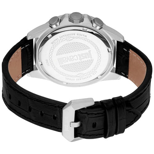 JUST CAVALLI JC1G348L0015 — стильные итальянские часы с функцией хронографаХронографФункция позволяет измерять отрезки времени с особой точностью: часы, минуты, секунды. Верным признаком хронографа является наличие на циферблате 3 дополнительных окошек-счётчиков., которые сочетают в себе элегантность и современный функционал. Круглый корпус диаметром 45 мм выполнен из нержавеющей стали, толщина корпуса составляет 11 мм, что придает модели выразительный внешний вид и надежную защиту от внешних воздействий. Часы оснащены кварцевым механизмом, также обладают функцией отображения даты, что делает их удобными для ежедневного использования. Минеральное стеклоМинеральное стеклоМинеральное стекло представляет собой искусственно выращенный минерал кварца. Такое стекло отличается особой устойчивостью к повреждениям и царапинам. Уступает по некоторым качествам сапфировому стеклу. защищает часы от царапин, а водозащита 100 метров идеально подходит для повседневного ношения. Стрелки с люминесцентным покрытиемЛюминесцентное покрытиеПозволяет считывать показания времени в темноте. Производители наносят на стрелки, часовые индексы, безель или поверхность циферблата светонакопительный состав, дающий холодное свечение.. Кожаный ремешок на стандартной застёжке обеспечивает комфортное ношение.