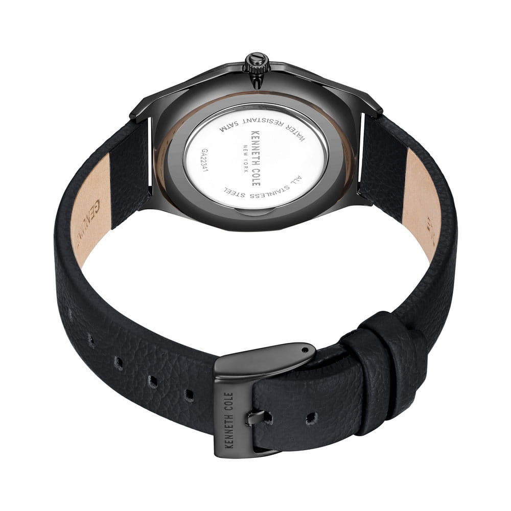 Мужские кварцевые часы с минеральным стекломМинеральное стеклоМинеральное стекло представляет собой искусственно выращенный минерал кварца. Такое стекло отличается особой устойчивостью к повреждениям и царапинам. Уступает по некоторым качествам сапфировому стеклу. Kenneth Cole Classic KCWGA2234104, кварцевый механизм с высокой точностью. Класс водозащиты: 30 метров, позволит защитить корпус от случайных брызг или капель дождя. Корпус часов изготовлен из стали с IP-покрытиемIP-покрытиеМетод ионного напыления. Демонстрирует повышенную устойчивость к истиранию, окислению и химическим веществам. Под воздействием высокого давления и температуры около 1500°C молекулы металла надёжно соединяются с частицами корпуса часов.. Кожаный ремешок на стандартной застёжке. БезельБезельВнешний ободок, закрепляющий стекло. В спортивных часах так называется поворотное кольцо с делениями на циферблате, выполняет роль таймера – замеряет отрезки времени на шкале. Неподвижный безель – элемент декора. Однонаправленно вращающийся безель на дайверских часах позволяет фиксировать моменты погружения и выныривания на поверхность. с IP-покрытиемIP-покрытиеМетод ионного напыления. Демонстрирует повышенную устойчивость к истиранию, окислению и химическим веществам. Под воздействием высокого давления и температуры около 1500°C молекулы металла надёжно соединяются с частицами корпуса часов..