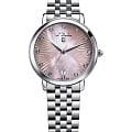Женские кварцевые часы L'Duchen из коллекции Eternity — это изысканный аксессуар, подчеркивающий утончённость и женственность. Корпус диаметром 32 мм выполнен из нержавеющей стали 316L, а циферблат защищён сапфировым стекломСапфировое стеклоПрочный и надёжный материал из кристалла сапфира синтетического происхождения, характеризующийся особой твёрдостью и устойчивостью к царапинам и повреждениям.. Циферблат розового цвета изготовлен из натурального перламутра, придающего модели благородное сияние. Центральная часть украшена декоративным узором гильоше и инкрустирована 12 фианитами, добавляющими изысканное мерцание. Окошко даты расположено в положении 6 часов. Часы оснащены стальным браслетом на застёжке «бабочка» с кнопкамиЗастёжка "бабочка"Такой вид застёжки дополняется предохранителями, помогающими избежать случайного раскрытия браслета. Обладают изящным исполнением. . Водонепроницаемость 50 м позволяет использовать часы в повседневных условиях.