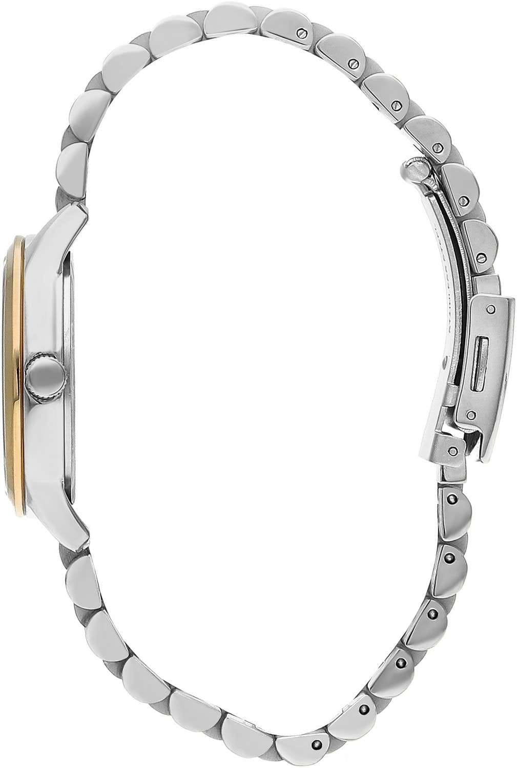 Женские наручные часы Lee Cooper LC07144.220 — это элегантная модель с утончённым дизайном. Корпус диаметром 33 мм выполнен из суперметалла, что придаёт часам изысканный вид. Перламутровый циферблат украшен изящными метками и стрелками, обеспечивая удобное считывание времени. Циферблат защищён минеральным стекломМинеральное стеклоМинеральное стекло представляет собой искусственно выращенный минерал кварца. Такое стекло отличается особой устойчивостью к повреждениям и царапинам. Уступает по некоторым качествам сапфировому стеклу., устойчивым к царапинам. Часы работают на кварцевом механизме, обеспечивая точность хода. Браслет из нержавеющей стали с раскладной застёжкойРаскладная застёжкаТакой тип застёжки используется только на браслетах из металла. Она никогда не раскрывается полностью, происходит разделение на 2 и более частей. Раскладывающая застёжка снизит вероятность потери часов к минимуму. гарантирует комфортное ношение и надёжную фиксацию на запястье. БезельБезельВнешний ободок, закрепляющий стекло. В спортивных часах так называется поворотное кольцо с делениями на циферблате, выполняет роль таймера – замеряет отрезки времени на шкале. Неподвижный безель – элемент декора. Однонаправленно вращающийся безель на дайверских часах позволяет фиксировать моменты погружения и выныривания на поверхность. с IP-покрытиемIP-покрытиеМетод ионного напыления. Демонстрирует повышенную устойчивость к истиранию, окислению и химическим веществам. Под воздействием высокого давления и температуры около 1500°C молекулы металла надёжно соединяются с частицами корпуса часов.. Водозащита 30 метров защищает часы от случайных брызг и дождя, делая их подходящими для повседневного использования.