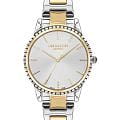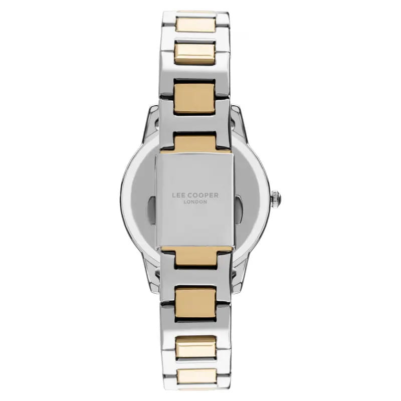 Женские наручные часы Lee Cooper LC07438.230 — это элегантная модель с утончённым дизайном. Корпус диаметром 34 мм выполнен из нержавеющей стали, что придаёт часам изысканный вид. Серебристый циферблат украшен изящными метками и стрелками обеспечивая удобное считывание времени. Циферблат защищён минеральным стекломМинеральное стеклоМинеральное стекло представляет собой искусственно выращенный минерал кварца. Такое стекло отличается особой устойчивостью к повреждениям и царапинам. Уступает по некоторым качествам сапфировому стеклу., устойчивым к царапинам. Часы работают на кварцевом механизме, обеспечивая точность хода. Браслет из нержавеющей стали с раскладной застёжкойРаскладная застёжкаТакой тип застёжки используется только на браслетах из металла. Она никогда не раскрывается полностью, происходит разделение на 2 и более частей. Раскладывающая застёжка снизит вероятность потери часов к минимуму. гарантирует комфортное ношение и надёжную фиксацию на запястье. Водозащита 30 метров защищает часы от случайных брызг и дождя, делая их подходящими для повседневного использования. БезельБезельВнешний ободок, закрепляющий стекло. В спортивных часах так называется поворотное кольцо с делениями на циферблате, выполняет роль таймера – замеряет отрезки времени на шкале. Неподвижный безель – элемент декора. Однонаправленно вращающийся безель на дайверских часах позволяет фиксировать моменты погружения и выныривания на поверхность. с IP-покрытиемIP-покрытиеМетод ионного напыления. Демонстрирует повышенную устойчивость к истиранию, окислению и химическим веществам. Под воздействием высокого давления и температуры около 1500°C молекулы металла надёжно соединяются с частицами корпуса часов. инкрустирован кристаллами.