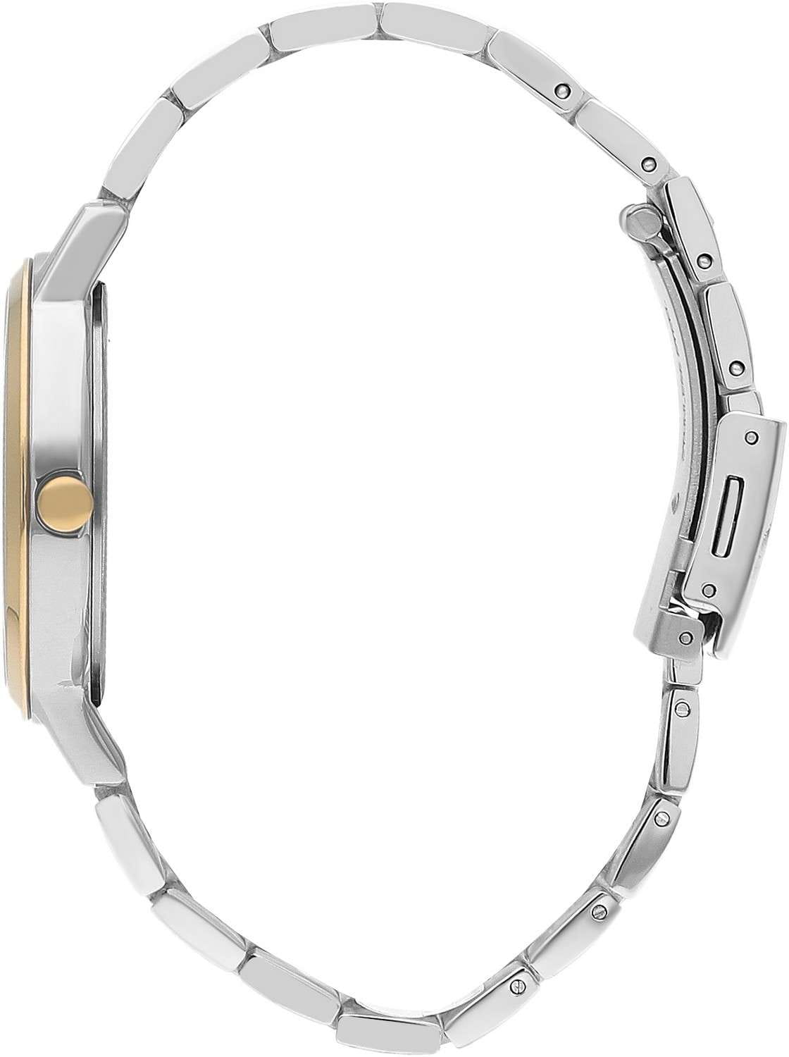 Женские наручные часы Lee Cooper LC07447.230 — это элегантная модель с утончённым дизайном. Корпус диаметром 30 мм выполнен из суперметалла, что придаёт часам изысканный вид. Серебристый циферблат украшен изящными метками и стрелками обеспечивая удобное считывание времени. Циферблат защищён минеральным стекломМинеральное стеклоМинеральное стекло представляет собой искусственно выращенный минерал кварца. Такое стекло отличается особой устойчивостью к повреждениям и царапинам. Уступает по некоторым качествам сапфировому стеклу., устойчивым к царапинам. Часы работают на кварцевом механизме, обеспечивая точность хода. Браслет из нержавеющей стали с раскладной застёжкойРаскладная застёжкаТакой тип застёжки используется только на браслетах из металла. Она никогда не раскрывается полностью, происходит разделение на 2 и более частей. Раскладывающая застёжка снизит вероятность потери часов к минимуму. гарантирует комфортное ношение и надёжную фиксацию на запястье. Водозащита 30 метров защищает часы от случайных брызг и дождя, делая их подходящими для повседневного использования. БезельБезельВнешний ободок, закрепляющий стекло. В спортивных часах так называется поворотное кольцо с делениями на циферблате, выполняет роль таймера – замеряет отрезки времени на шкале. Неподвижный безель – элемент декора. Однонаправленно вращающийся безель на дайверских часах позволяет фиксировать моменты погружения и выныривания на поверхность. с IP-покрытиемIP-покрытиеМетод ионного напыления. Демонстрирует повышенную устойчивость к истиранию, окислению и химическим веществам. Под воздействием высокого давления и температуры около 1500°C молекулы металла надёжно соединяются с частицами корпуса часов.. Стрелки покрыты люминесцентным покрытиемЛюминесцентное покрытиеПозволяет считывать показания времени в темноте. Производители наносят на стрелки, часовые индексы, безель или поверхность циферблата светонакопительный состав, дающий холодное свечение., обеспечивая удобное считывание показаний в условиях недостаточного освещения.