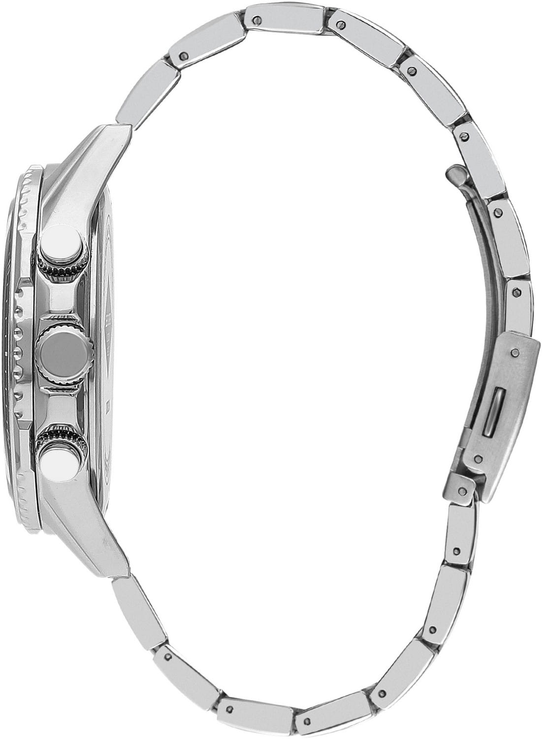 Мужские кварцевые часы Lee Cooper LC07627.390 — это мультифункциональный аксессуар с лаконичным дизайном. Корпус диаметром 46 мм выполнен из суперметалла. Безель с IP-покрытиемIP-покрытиеМетод ионного напыления. Демонстрирует повышенную устойчивость к истиранию, окислению и химическим веществам. Под воздействием высокого давления и температуры около 1500°C молекулы металла надёжно соединяются с частицами корпуса часов. в синем цвете. Циферблат синего цвета оформлен индексами и дополнен окошками даты, дня недели и 24-часового индикатора. Циферблат защищён минеральным стекломМинеральное стеклоМинеральное стекло представляет собой искусственно выращенный минерал кварца. Такое стекло отличается особой устойчивостью к повреждениям и царапинам. Уступает по некоторым качествам сапфировому стеклу.. Стрелки и метки с люминесцентным покрытиемЛюминесцентное покрытиеПозволяет считывать показания времени в темноте. Производители наносят на стрелки, часовые индексы, безель или поверхность циферблата светонакопительный состав, дающий холодное свечение., обеспечивающим хорошую читаемость в темноте. Часы оснащены стальным браслетом серебристого цвета на раскладной застёжкеРаскладная застёжкаТакой тип застёжки используется только на браслетах из металла. Она никогда не раскрывается полностью, происходит разделение на 2 и более частей. Раскладывающая застёжка снизит вероятность потери часов к минимуму.. Водонепроницаемость 50 м позволяет использовать часы для повседневного ношения. Универсальный выбор для тех, кто ценит функциональность и надёжность.