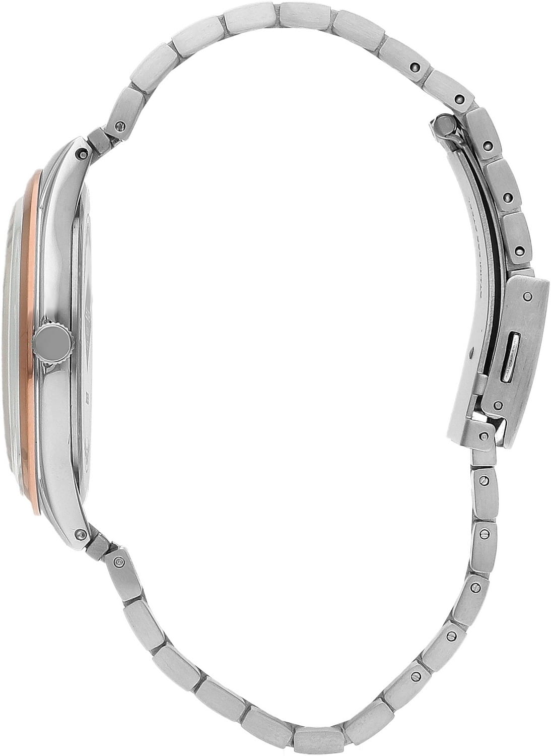 Мужские часы Lee Cooper LC07630.230 – это стильная модель, которая сочетает в себе современный дизайн и высокую функциональность. Часы идеально подходят для ежедневного ношения и могут стать отличным дополнением к любому наряду. Элегантный корпус часов диаметром 44 мм выполнен из суперметалла, а неподвижный безельБезельВнешний ободок, закрепляющий стекло. В спортивных часах так называется поворотное кольцо с делениями на циферблате, выполняет роль таймера – замеряет отрезки времени на шкале. Неподвижный безель – элемент декора. Однонаправленно вращающийся безель на дайверских часах позволяет фиксировать моменты погружения и выныривания на поверхность. с IP-покрытиемIP-покрытиеМетод ионного напыления. Демонстрирует повышенную устойчивость к истиранию, окислению и химическим веществам. Под воздействием высокого давления и температуры около 1500°C молекулы металла надёжно соединяются с частицами корпуса часов. придает модели особый блеск. Минеральное стеклоМинеральное стеклоМинеральное стекло представляет собой искусственно выращенный минерал кварца. Такое стекло отличается особой устойчивостью к повреждениям и царапинам. Уступает по некоторым качествам сапфировому стеклу. защищает изысканный циферблат от царапин, сохраняя его безупречный вид. Циферблат дополнен аккуратными метками и стрелками с люминесцентным покрытиемЛюминесцентное покрытиеПозволяет считывать показания времени в темноте. Производители наносят на стрелки, часовые индексы, безель или поверхность циферблата светонакопительный состав, дающий холодное свечение., что гарантирует читаемость даже в условиях недостаточного освещения. Часы оснащены функцией отображения даты на позиции «3 часа».  Механизм часов гарантирует точный ход и надежную работу, а надежный браслет из нержавеющей стали с IP-покрытиемIP-покрытиеМетод ионного напыления. Демонстрирует повышенную устойчивость к истиранию, окислению и химическим веществам. Под воздействием высокого давления и температуры около 1500°C молекулы металла надёжно соединяются с частицами корпуса часов. с раскладной застёжкойРаскладная застёжкаТакой тип застёжки используется только на браслетах из металла. Она никогда не раскрывается полностью, происходит разделение на 2 и более частей. Раскладывающая застёжка снизит вероятность потери часов к минимуму. обеспечивает комфортную фиксацию на запястье. Модель LC07630.230 станет прекрасным выбором для тех, кто ценит стиль и качество в аксессуарах.