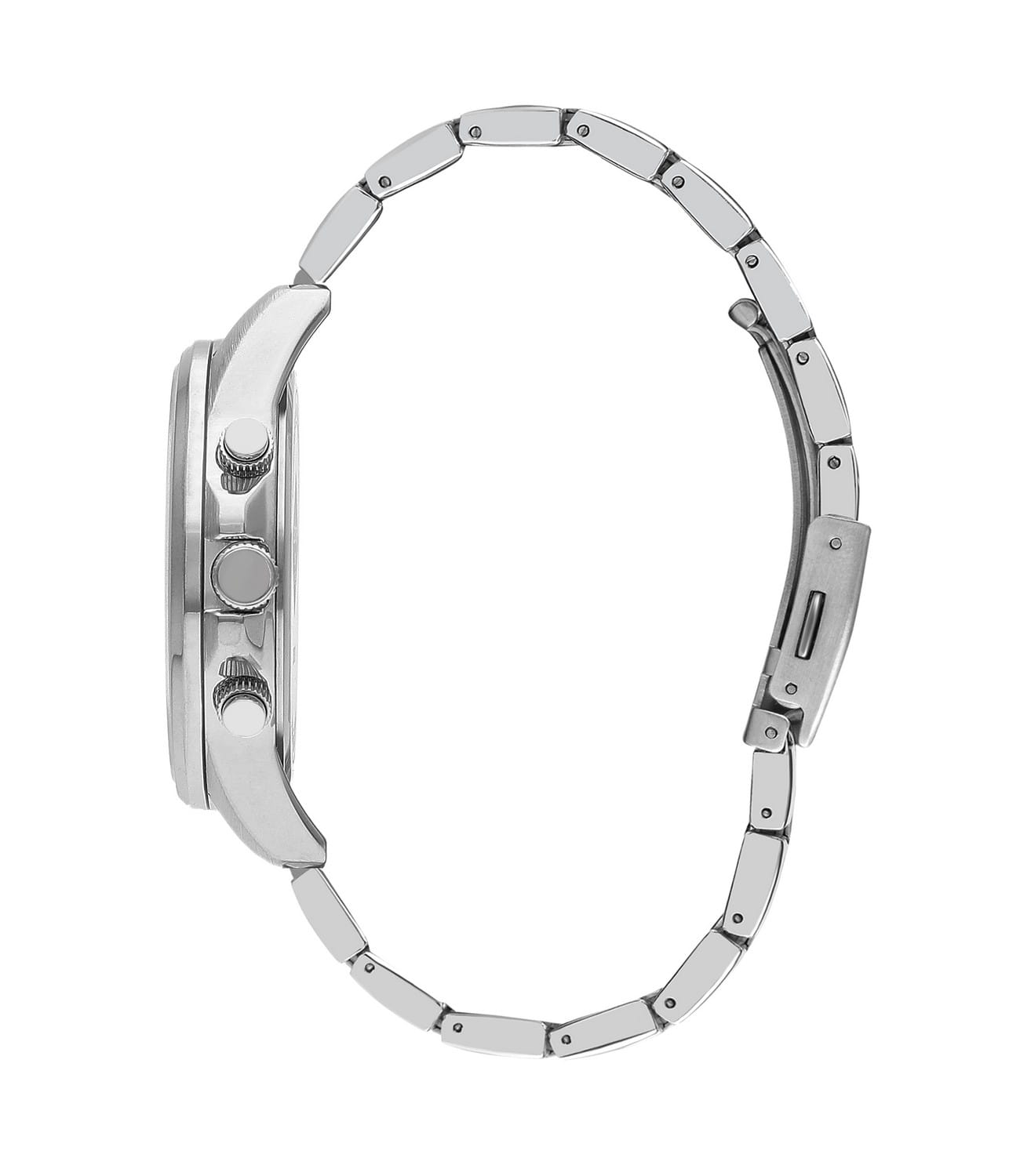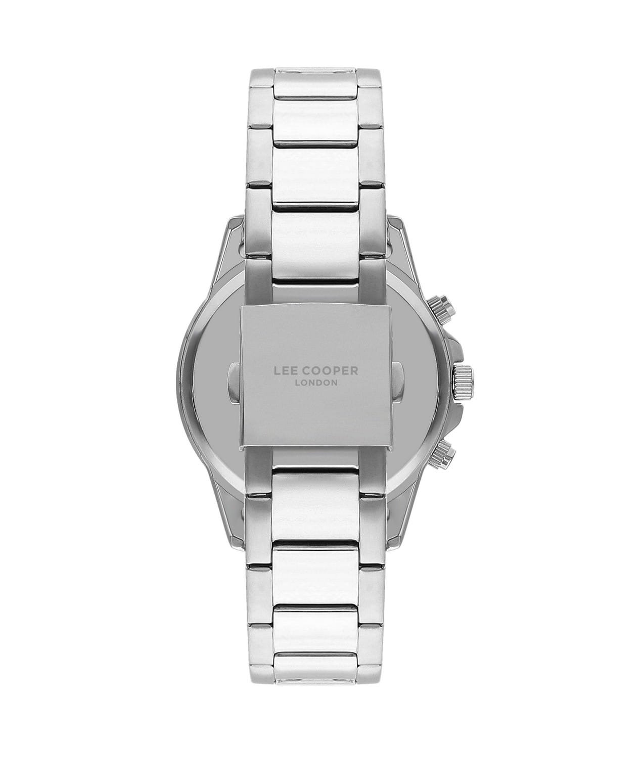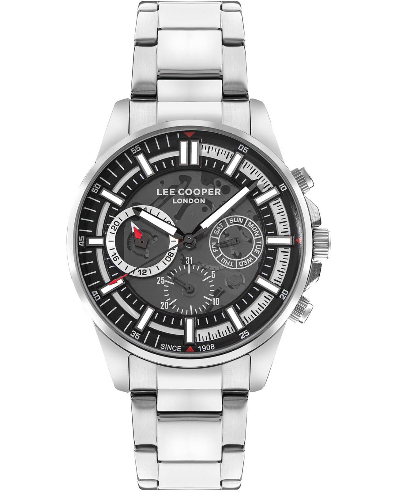 Lee Cooper LC07817.350  — элегантная модель с функциональными возможностями для повседневного использования. Корпус из суперметалла и диаметром 45 мм придаёт часам классический и современный вид. Циферблат защищён минеральным стекломМинеральное стеклоМинеральное стекло представляет собой искусственно выращенный минерал кварца. Такое стекло отличается особой устойчивостью к повреждениям и царапинам. Уступает по некоторым качествам сапфировому стеклу., устойчивым к царапинам, хорошо может выдержать небольшие удары и падения. Стильный циферблат оформлен изысканными индексами и дополнен окошками даты, дня недели и 24-часового индикатора, а также аккуратными метками и стрелками с люминесцентным покрытиемЛюминесцентное покрытиеПозволяет считывать показания времени в темноте. Производители наносят на стрелки, часовые индексы, безель или поверхность циферблата светонакопительный состав, дающий холодное свечение., что гарантирует читаемость даже в условиях недостаточного освещения. Часы работают на кварцевом механизме, обеспечивающем точность хода. Стальной браслет на раскладной застёжкеРаскладная застёжкаТакой тип застёжки используется только на браслетах из металла. Она никогда не раскрывается полностью, происходит разделение на 2 и более частей. Раскладывающая застёжка снизит вероятность потери часов к минимуму. гарантирует удобную посадку и надёжную фиксацию на запястье. Водозащита 50 метров защищает часы от брызг и дождя, делая их подходящими для повседневного использования.