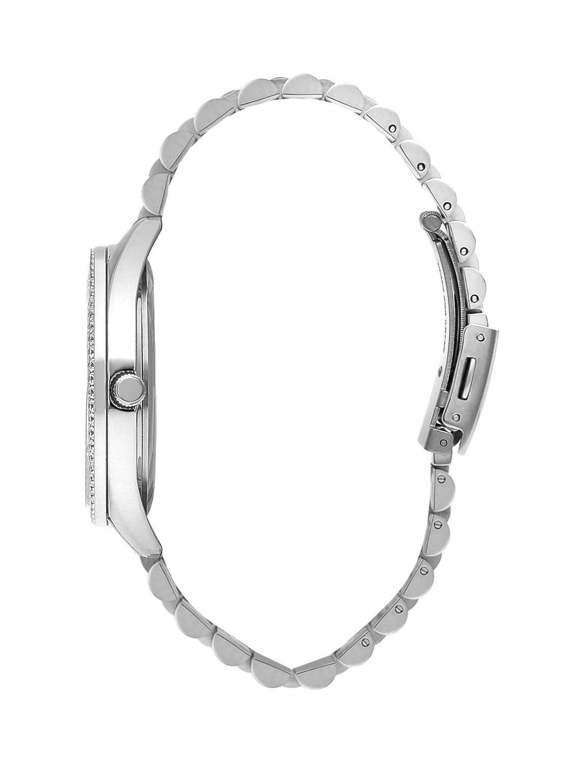 Женские часы Lee Cooper LC07831.520 выполнены в классическом стиле и сочетают строгий дизайн с надёжным механизмом. Модель оснащена кварцевым механизмом, обеспечивающим точность хода и минимальное обслуживание. Корпус круглой формы имеет размер 36 мм, изготовлен из суперметалла с изысканным неподвижным безелемБезельВнешний ободок, закрепляющий стекло. В спортивных часах так называется поворотное кольцо с делениями на циферблате, выполняет роль таймера – замеряет отрезки времени на шкале. Неподвижный безель – элемент декора. Однонаправленно вращающийся безель на дайверских часах позволяет фиксировать моменты погружения и выныривания на поверхность. с вставками из циркона, гарантирует комфорт при ношении. Циферблат дополнен изящными вставками из циркона для чёткого отсчёта времени. Защиту циферблата обеспечивает минеральное стеклоМинеральное стеклоМинеральное стекло представляет собой искусственно выращенный минерал кварца. Такое стекло отличается особой устойчивостью к повреждениям и царапинам. Уступает по некоторым качествам сапфировому стеклу., устойчивое к мелким механическим повреждениям. Стрелки с люминесцентным покрытиемЛюминесцентное покрытиеПозволяет считывать показания времени в темноте. Производители наносят на стрелки, часовые индексы, безель или поверхность циферблата светонакопительный состав, дающий холодное свечение.. Стальной браслет с частичным IP-покрытиемIP-покрытиеМетод ионного напыления. Демонстрирует повышенную устойчивость к истиранию, окислению и химическим веществам. Под воздействием высокого давления и температуры около 1500°C молекулы металла надёжно соединяются с частицами корпуса часов. на раскладной застёжкеРаскладная застёжкаТакой тип застёжки используется только на браслетах из металла. Она никогда не раскрывается полностью, происходит разделение на 2 и более частей. Раскладывающая застёжка снизит вероятность потери часов к минимуму. гарантирует удобную посадку и надёжную фиксацию на запястье. Водозащита 30WR позволяет использовать часы в повседневных условиях без риска повреждения от случайных брызг воды. Это сочетание классического дизайна, прочности материалов и качества исполнения для уверенных в себе женщин.