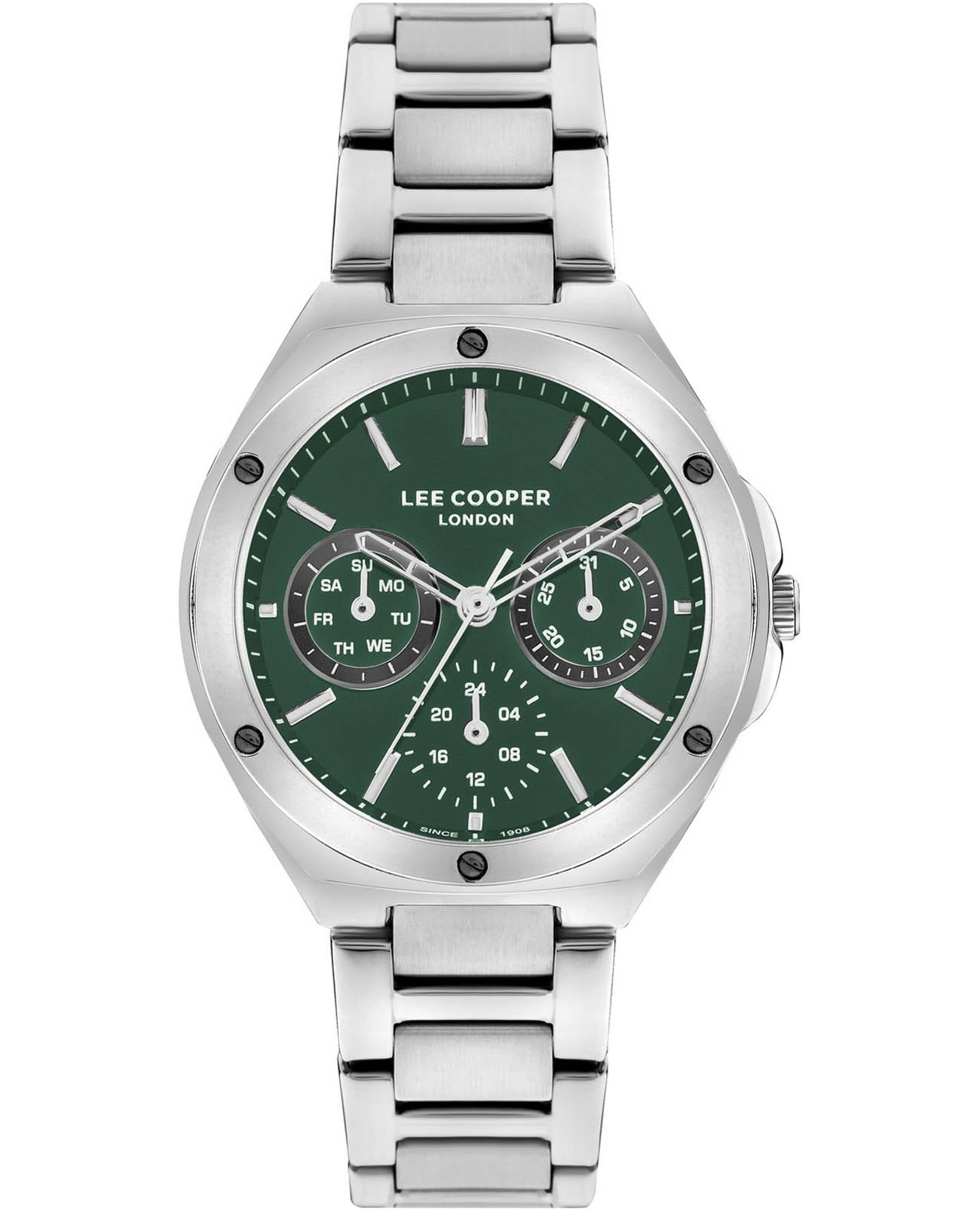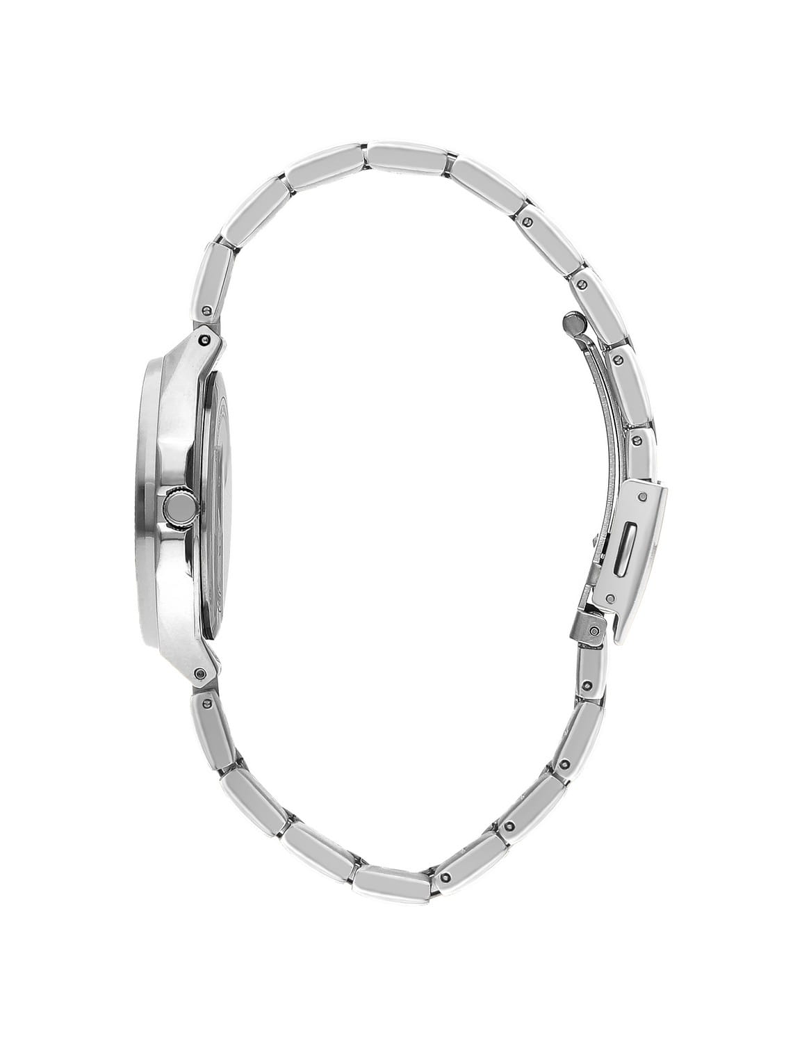 Женские наручные часы Lee Cooper LC07844.370 оснащены точным кварцевым механизмом, обеспечивающим высокую надежность и точность хода. Корпус часов изготовлен из суперметалла, что гарантирует долговечность и устойчивость к повреждениям. Три субдисплея отображают дату, день недели и 24-часовой формат времени, что добавляет функциональности и практичности. Для защиты циферблата используется минеральное стеклоМинеральное стеклоМинеральное стекло представляет собой искусственно выращенный минерал кварца. Такое стекло отличается особой устойчивостью к повреждениям и царапинам. Уступает по некоторым качествам сапфировому стеклу., устойчивое к царапинам и механическим повреждениям. Метки покрыты люминесцентным покрытиемЛюминесцентное покрытиеПозволяет считывать показания времени в темноте. Производители наносят на стрелки, часовые индексы, безель или поверхность циферблата светонакопительный состав, дающий холодное свечение., обеспечивающим отличную читаемость в темноте. Интегрированный браслет изготовлен из нержавеющей стали, которая славится своей долговечностью и возможностью полировки. Браслет гармонично дополняет дизайн часов и обеспечивает комфортное ношение в течение дня благодаря раскладной застёжкеРаскладная застёжкаТакой тип застёжки используется только на браслетах из металла. Она никогда не раскрывается полностью, происходит разделение на 2 и более частей. Раскладывающая застёжка снизит вероятность потери часов к минимуму.. Эти часы сочетают в себе стиль и функциональность, что делает их универсальным аксессуаром, подходящим к любому образу. Модель станет прекрасным подарком. Часы обладают водонепроницаемостью до 50 метров (5 АТМ), что позволяет использовать их в повседневной жизни, включая контакт с водой при мытье рук или дожде.