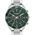 Мужские часы Lee Cooper LC07847.370 выполнены в классическом стиле и сочетают строгий дизайн с надёжным механизмом. Модель оснащена кварцевым механизмом, обеспечивающим точность хода и минимальное обслуживание. Корпус имеет размер 45 мм, изготовлен из суперметалла с поворотным безелемБезельВнешний ободок, закрепляющий стекло. В спортивных часах так называется поворотное кольцо с делениями на циферблате, выполняет роль таймера – замеряет отрезки времени на шкале. Неподвижный безель – элемент декора. Однонаправленно вращающийся безель на дайверских часах позволяет фиксировать моменты погружения и выныривания на поверхность. с IP-покрытиемIP-покрытиеМетод ионного напыления. Демонстрирует повышенную устойчивость к истиранию, окислению и химическим веществам. Под воздействием высокого давления и температуры около 1500°C молекулы металла надёжно соединяются с частицами корпуса часов.. Циферблат зеленого цвета дополнен индексами для чёткого отсчёта времени, а также функциями отображения даты, дня недели, 24-часового индикатора и второго часового поясаВторой часовой поясФункция, позволяющая отображать время двух часовых поясов одновременно.. Защиту циферблата обеспечивает минеральное стеклоМинеральное стеклоМинеральное стекло представляет собой искусственно выращенный минерал кварца. Такое стекло отличается особой устойчивостью к повреждениям и царапинам. Уступает по некоторым качествам сапфировому стеклу., устойчивое к мелким механическим повреждениям. Циферблат украшен стрелками и метками с люминесцентным покрытиемЛюминесцентное покрытиеПозволяет считывать показания времени в темноте. Производители наносят на стрелки, часовые индексы, безель или поверхность циферблата светонакопительный состав, дающий холодное свечение., гармонично дополняющим общий дизайн модели. Браслет из стали оснащен раскладной застёжкойРаскладная застёжкаТакой тип застёжки используется только на браслетах из металла. Она никогда не раскрывается полностью, происходит разделение на 2 и более частей. Раскладывающая застёжка снизит вероятность потери часов к минимуму., обеспечивающим комфортное и безопасное ношение. Водозащита 5 АТМ позволяет использовать часы в повседневных условиях без риска повреждения от случайных брызг воды. Это сочетание классического дизайна, прочности материалов и качества исполнения для уверенных в себе мужчин.