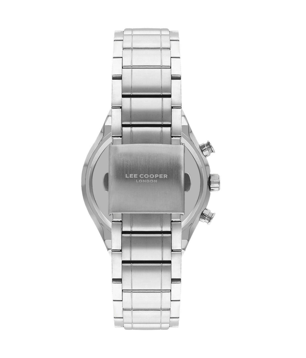 Мужские часы Lee Cooper LC07853.370 — это стильный аксессуар, сочетающий в себе классический дизайн и современные функции. Эти часы идеально подойдут для тех, кто ценит элегантность и практичность в повседневной жизни. Круглый корпус диаметром 43 мм выполнен из суперметалла серебристого цвета. Циферблат защищен минеральным стекломМинеральное стеклоМинеральное стекло представляет собой искусственно выращенный минерал кварца. Такое стекло отличается особой устойчивостью к повреждениям и царапинам. Уступает по некоторым качествам сапфировому стеклу., обеспечивающим устойчивость к царапинам. Часы оснащены надежным кварцевым механизмом, а элегантный стальной браслет на раскладной застёжкеРаскладная застёжкаТакой тип застёжки используется только на браслетах из металла. Она никогда не раскрывается полностью, происходит разделение на 2 и более частей. Раскладывающая застёжка снизит вероятность потери часов к минимуму. гарантирует комфортную посадку на запястье. Часы с люминесцентным покрытиемЛюминесцентное покрытиеПозволяет считывать показания времени в темноте. Производители наносят на стрелки, часовые индексы, безель или поверхность циферблата светонакопительный состав, дающий холодное свечение. позволяют легко считывать время даже в условиях недостаточного освещения. Окошко даты находится в положении 4  часов. Водозащита 50 метров позволит защитить корпус от случайных брызг или капель дождя. Мультифункциональная модель с 24-х часовым индикатором и хронографомХронографФункция позволяет измерять отрезки времени с особой точностью: часы, минуты, секунды. Верным признаком хронографа является наличие на циферблате 3 дополнительных окошек-счётчиков.. Lee Cooper  — отличный выбор для тех, кто ценит утонченность и качество.
