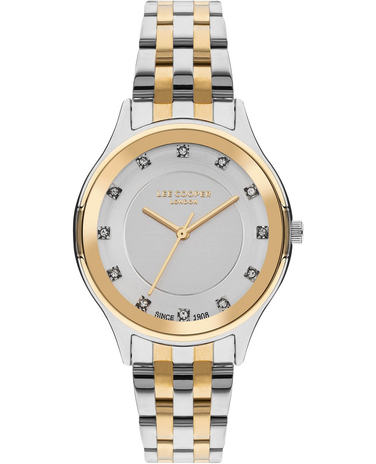 Женские часы Lee Cooper LC07867.230 выполнены в классическом стиле и сочетают строгий дизайн с надёжным механизмом. Модель оснащена кварцевым механизмом, обеспечивающим точность хода и минимальное обслуживание. Корпус круглой формы имеет размер 35 мм, изготовленный из суперметалла, идеально сбалансирован и элегантен. Неповоротный безельБезельВнешний ободок, закрепляющий стекло. В спортивных часах так называется поворотное кольцо с делениями на циферблате, выполняет роль таймера – замеряет отрезки времени на шкале. Неподвижный безель – элемент декора. Однонаправленно вращающийся безель на дайверских часах позволяет фиксировать моменты погружения и выныривания на поверхность. с IP-покрытиемIP-покрытиеМетод ионного напыления. Демонстрирует повышенную устойчивость к истиранию, окислению и химическим веществам. Под воздействием высокого давления и температуры около 1500°C молекулы металла надёжно соединяются с частицами корпуса часов..  Циферблат серебристого цвета дополнен вставками из циркона для чёткого отсчёта времени. Защиту циферблата обеспечивает минеральное стеклоМинеральное стеклоМинеральное стекло представляет собой искусственно выращенный минерал кварца. Такое стекло отличается особой устойчивостью к повреждениям и царапинам. Уступает по некоторым качествам сапфировому стеклу., устойчивое к мелким механическим повреждениям. Браслет из нержавеющей стали с частичным IP-покрытиемIP-покрытиеМетод ионного напыления. Демонстрирует повышенную устойчивость к истиранию, окислению и химическим веществам. Под воздействием высокого давления и температуры около 1500°C молекулы металла надёжно соединяются с частицами корпуса часов. фиксируется на раскладной застёжкеРаскладная застёжкаТакой тип застёжки используется только на браслетах из металла. Она никогда не раскрывается полностью, происходит разделение на 2 и более частей. Раскладывающая застёжка снизит вероятность потери часов к минимуму.. Водозащита 3 АТМ позволяет использовать часы в повседневных условиях без риска повреждения от случайных брызг воды. Это сочетание классического дизайна, прочности материалов и качества исполнения для уверенных в себе женщин.