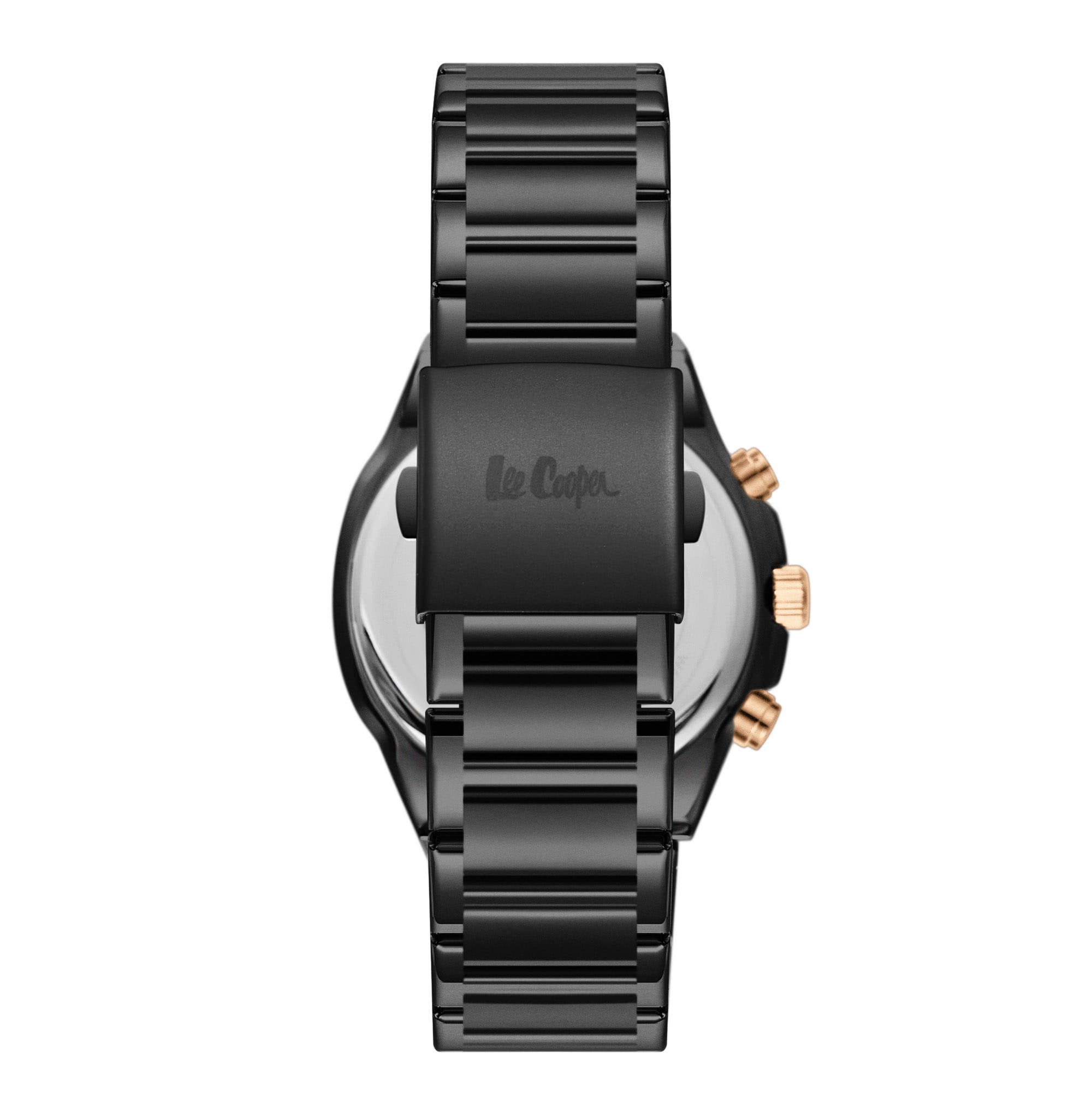 Мужские часы Lee Cooper LC07991.650 — это идеальный аксессуар для современного мужчины, ценящего моду и элегантность. Модель создана с учетом последних трендов и отличается высоким качеством материалов и сборки. Часы оснащены кварцевым механизмом, обеспечивающим точный ход и минимальное техническое обслуживание. Корпус круглой формы имеет диаметр 43 мм , изготовлен из нержавеющей стали с IP-покрытием IP-покрытиемIP-покрытиеМетод ионного напыления. Демонстрирует повышенную устойчивость к истиранию, окислению и химическим веществам. Под воздействием высокого давления и температуры около 1500°C молекулы металла надёжно соединяются с частицами корпуса часов. чёрного цвета, что придаёт ему глубину и благородство. Браслет также выполнен из нержавеющей стали с чёрным покрытием и дополнен раскладной застёжкойРаскладная застёжкаТакой тип застёжки используется только на браслетах из металла. Она никогда не раскрывается полностью, происходит разделение на 2 и более частей. Раскладывающая застёжка снизит вероятность потери часов к минимуму. для удобства ношения. Циферблат чёрного цвета оформлен со вкусом: часовые метки выполнены в виде линейных индексов, что делает его минималистичным и легким к восприятию. Отсутствие лишних деталей подчеркивает строгость дизайна и делает его универсальным элементом стиля. Защиту циферблата обеспечивает минеральное стекло минеральное стеклоМинеральное стеклоМинеральное стекло представляет собой искусственно выращенный минерал кварца. Такое стекло отличается особой устойчивостью к повреждениям и царапинам. Уступает по некоторым качествам сапфировому стеклу., устойчивое к мелким повреждениям и царапинам. Водозащита позволяет использовать часы в повседневных условиях без риска повреждения от случайных брызг воды. Благодаря чёрному цвету корпуса, браслета и циферблата, часы выглядят целостно и стильно — они одинаково хорошо подойдут как к деловому, так и к неформальному образу. Это не просто средство измерения времени — это стильный аксессуар, подчёркивающий ваш вкус и внимание к деталям.