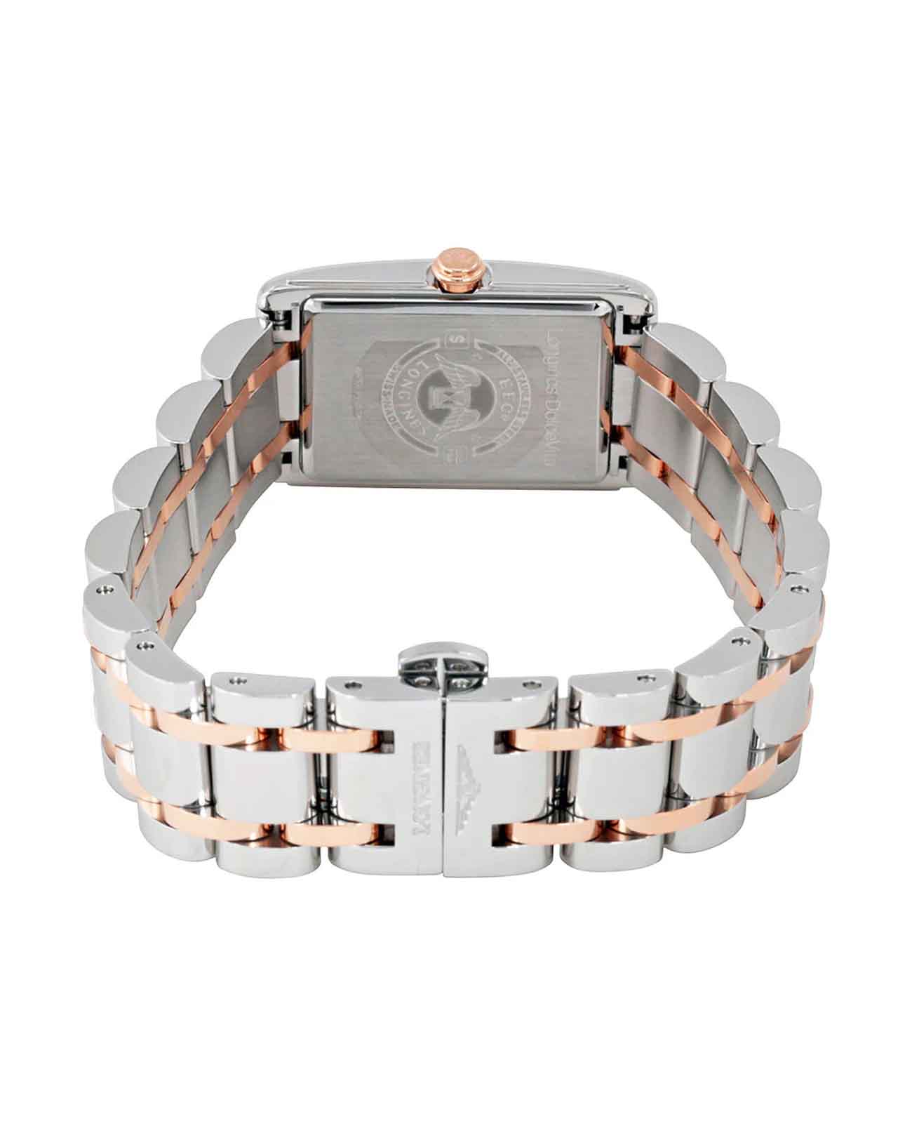 Женские швейцарские часы Longines DolceVita L5.255.5.57.7, кварцевый механизм с высокой точностью. Сапфировое стеклоСапфировое стеклоПрочный и надёжный материал из кристалла сапфира синтетического происхождения, характеризующийся особой твёрдостью и устойчивостью к царапинам и повреждениям. устойчивое к появлению царапин, обладающее высокой прозрачностью. Корпус часов изготовлен из стали. Циферблат украшают 13 бриллиантов 0,06 карат. Малая секундная стрелка в положении 6 часов. Класс водозащиты: 30 метров, позволит защитить корпус от случайных брызг или капель дождя. Браслет из нержавеющей стали и с 18-каратным золотом18-каратное золотоОбозначение по каратной системе пробирования, оно показывает, сколько драгоценного металла содержится в изделии. 18 карат - в составе 75% чистого золота, соответствует 750 пробе.