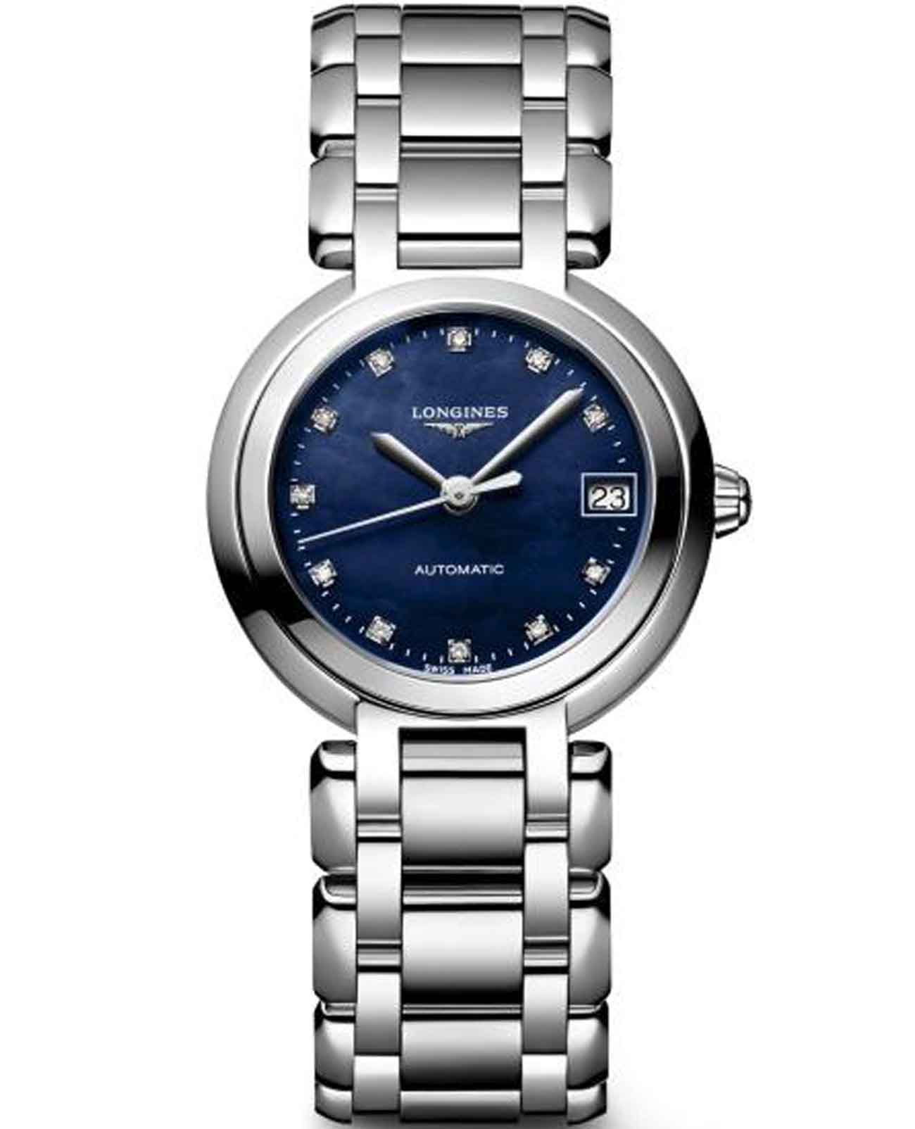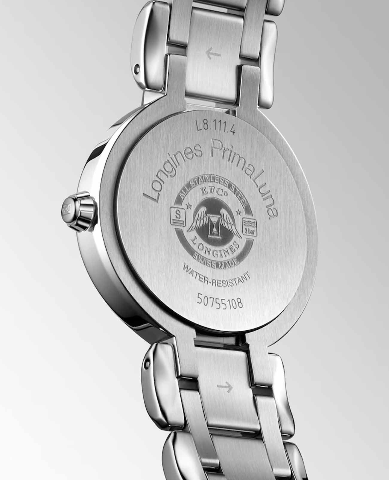 Женские швейцарские механические часы с автоподзаводом Longines PrimaLuna L8.111.4.98.6. Исключительно женственная коллекция. Округлые, нежные линии Longines Prima Luna - дань преклонения перед женственной Луной, символом переменчивости времени. Сапфировое стеклоСапфировое стеклоПрочный и надёжный материал из кристалла сапфира синтетического происхождения, характеризующийся особой твёрдостью и устойчивостью к царапинам и повреждениям. устойчивое к появлению царапин, обладающее высокой прозрачностью. Корпус часов изготовлен из нержавеющей стали. Изысканная чистота циферблата подчеркивает ее мягкий силуэт, обрамленный сиянием бриллиантов. Циферблат с 11 бриллиантами группы Top Wesselton VS-SI общим весом 0.032 карата. Окошко даты в положении 3 часов. Автоматический механизм с частотой баланса 28 800 полуколебаний в час и запасом хода, которого хватает примерно на 45 часов работы. Класс водозащиты: 30 метров, позволит защитить корпус от случайных брызг или капель дождя. Стальной браслет на застёжке-бабочке с кнопкамиЗастёжка "бабочка"Такой вид застёжки дополняется предохранителями, помогающими избежать случайного раскрытия браслета. Обладают изящным исполнением. .