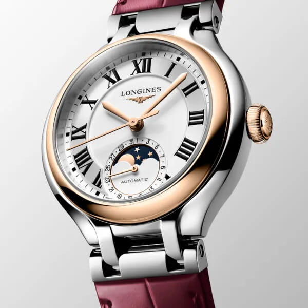 Женские швейцарские механические LONGINES PRIMALUNA MOONPHASE L8.126.5.71.2 представляют собой пример истинной женственности и элегантности. Коллекция LONGINES PrimaLuna ‒ это воплощение элегантности и женственности. Созданная с тщательным вниманием к деталям, она отражает небесное влияние в своих изящных изгибах и линиях. Часы оснащены прочным и устойчивым к царапинам сапфировым стекломСапфировое стеклоПрочный и надёжный материал из кристалла сапфира синтетического происхождения, характеризующийся особой твёрдостью и устойчивостью к царапинам и повреждениям. с антибликовое покрытиемАнтибликовое покрытиеСлой оксида металла в 0,13-0,3 микрон, благодаря которому стекло часов не бликует и не отражает свет. Антибликовое покрытие уменьшает отражение света в 10 раз, обеспечивая отличную читаемость показателей циферблата., которое отличается высокой прозрачностью и обеспечивает идеальную читаемость циферблата в любых условиях. Корпус часов изготовлен из высококачественной нержавеющей стали, что гарантирует долговечность и стойкость к внешним воздействиям. Неподвижный безельБезельВнешний ободок, закрепляющий стекло. В спортивных часах так называется поворотное кольцо с делениями на циферблате, выполняет роль таймера – замеряет отрезки времени на шкале. Неподвижный безель – элемент декора. Однонаправленно вращающийся безель на дайверских часах позволяет фиксировать моменты погружения и выныривания на поверхность. из 18-каратного золота18-каратное золотоОбозначение по каратной системе пробирования, оно показывает, сколько драгоценного металла содержится в изделии. 18 карат - в составе 75% чистого золота, соответствует 750 пробе.