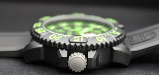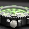Швейцарский кварцевый механизм RONDA, калибр Powertech 515, на 1 камне. Точность хода с погрешностью не более -10/+20 сек. в месяц. Элемент питания №371 рассчитан на 45 месяцев работы. Центральные часовая, минутная и секундная стрелки. Апертуры даты. Корпус из комбинированного полимера, усиленного карбоном. Диаметр корпуса: 44 мм, толщина – 13,8 мм. Однонаправленный, вращающийся щелчками, безель с IP-покрытием черного цвета и капсулой на «12 часах» со светящимся зеленым элементом «тригалайт». Минеральное стекло устойчивое к возникновению царапин. На часовых индексах и стрелках установлены миниатюрные запаянные колбочки с газообразным тритием. Эти автономных миниатюрные источники света не требуют «позарядки» от батарейки или световой энергии и работают постоянно. В зависимости от состава покрытия внутренней поверхности трубочки, светящееся вещество – люминофор может светиться различными цветами. Свечение люминофора активируется при «бомбардировки» его заряженными частицами излучаемыми тритием. Несомненным преимуществом подсветки «тригалайт» является необычайно длительный срок свечения, порядка 25 лет, а также полная безопасность для здоровья человека и окружающей среды. Циферблат с контрастной разметкой из арабских цифр, фирменная подсветка «trigalight» имеющая зеленое и синее свечение. Задняя крышка крепится к корпусу 4 винтами. Переводная коронка имеет двойную защиту. Водозащита до 200 метров (20АТМ). Полиуретановый ремешок с тисненой поверхностью, стандартная застежка с шипом.