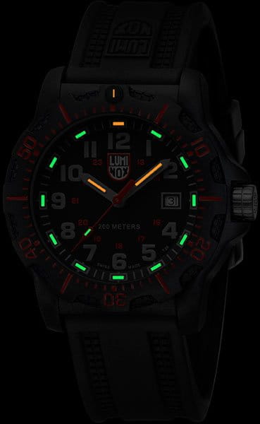 Швейцарский кварцевый механизм RONDA с аналоговой индикацией. Точность хода с погрешностью не более -10/+20 сек. в месяц. Центральные часовая, минутная и секундная стрелки. Индикация даты в апертуре на отметке «3 часа». Комбинированный корпус из композитного полимерного материала армированного углеволокном - карбона. Диаметр корпуса составляет 45 мм, толщина – 13 мм. Поворотный однонаправленный безель, вращающийся щелчками против хода часовой стрелки. Капсула на «12 часах» со светящимся оранжевым элементом «тригалайт». Сапфировое стекло с антибликовым покрытием имеет повышенную стойкость к появлению царапин. Циферблат с гладкой поверхностью, контрастные рисованные цифры и разметка в стиле «милитари». Яркая фирменная подсветка с газообразным тритием – на часовой и минутной стрелках, а так же на разметке циферблата установлены микроскопические запаянные трубочки с газообразным тритием, обеспечивающие непрерывное свечение до 25 лет подряд, зеленого и оранжевого цветов. Задняя крышка имеет винтовое соединение с корпусом. Переводная коронка имеет двойную защиту Double-Security Gasket. Водостойкость 200 метров (20 АТМ). Прочный и эластичный полимерный ремешок с тисненой поверхностью, стандартная застежка с двойным шипом.