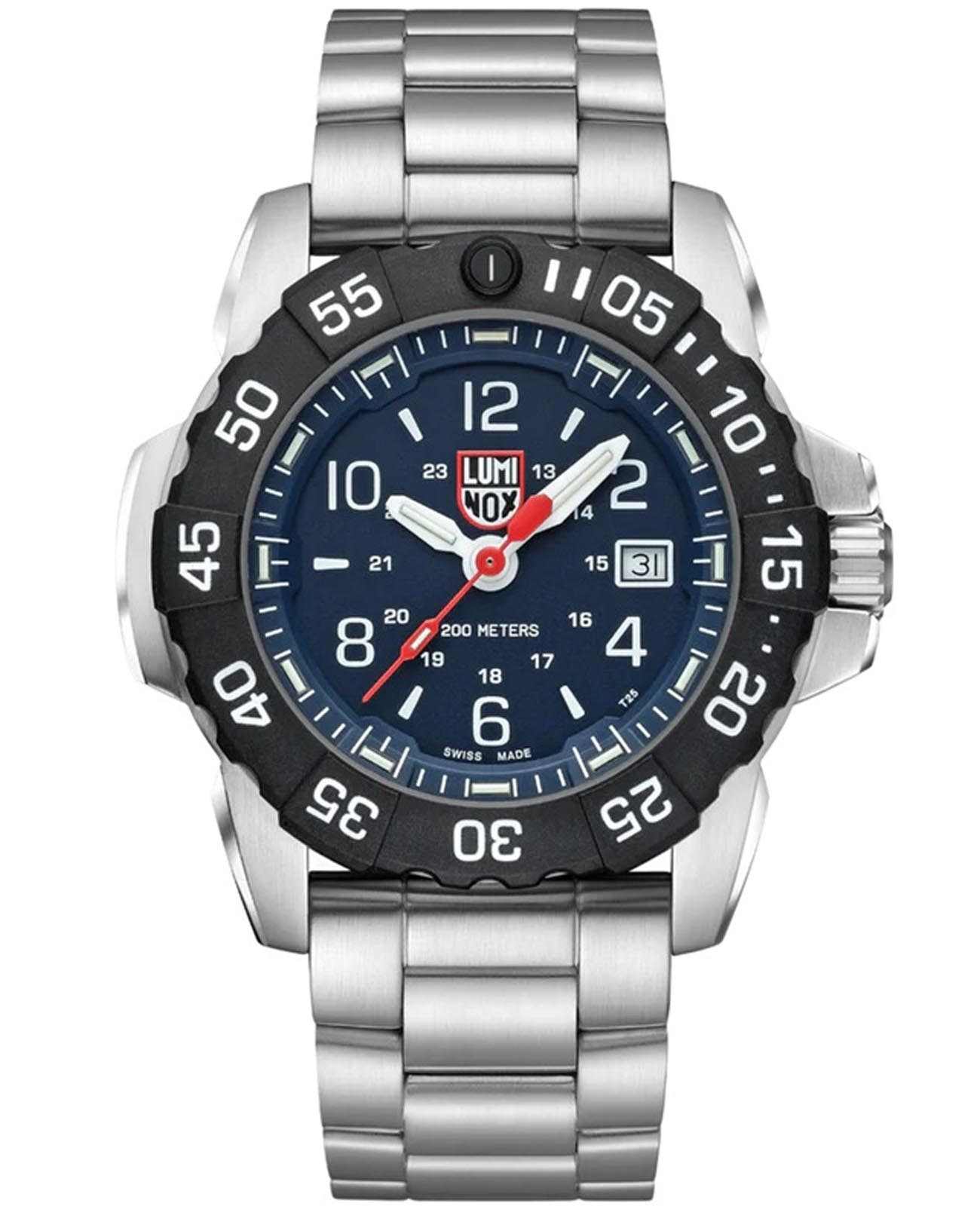 Мужские наручные часы Luminox XS.3254.CB из коллекции Navy SEAL сочетают в себе спортивный дизайн и надежность швейцарского качества . Модель обладает круглым корпусом диаметром 45 мм, изготовленным из стали икарбонаКарбонОт «carbon», «carbone» - углерод, углепластик - полимерный композиционный материал из переплетённых под определенным углом между собой нитей углеродного волокна, применяется для изготовления лёгких, но прочных деталей. В часах часто используют для украшения циферблатов и ремешков. Так же карбон используется в изготовлении корпусов. Такие корпуса обладают антикоррозионным свойством, не поддаются электромагнитному излучению, обладают повышенной прочностью и противоударностью. (CARBONOX™), что обеспечивает высокую устойчивость к внешним воздействиям при сохранении легкости . Циферблат черного цвета украшен контрастными метками и стрелками с люминесцентным покрытиемЛюминесцентное покрытиеПозволяет считывать показания времени в темноте. Производители наносят на стрелки, часовые индексы, безель или поверхность циферблата светонакопительный состав, дающий холодное свечение., гарантирующим постоянную видимость времени даже в условиях низкой освещенности благодаря системе LLTLLTLLT — это автономный механизм подсветки, основанный на использовании микроскопических газонаполненных элементов. Специальные герметичные капсулы из боросиликатного стекла, интегрированные в циферблат, генерируют свечение без необходимости подключения к внешним источникам энергии. Для их работы не требуется ни дополнительный свет, ни механическое воздействие (например, нажатие кнопки). Свечение возникает благодаря химическому процессу: реакция между тритием, заключенным в капсулах, и люминофорным покрытием создает стабильное автономное освещение. Технология обеспечивает энергетическую независимость и долговечность подсветки. (микрогазовые огни) . Часы оснащены кварцевым механизмом швейцарского производства Ronda 515, обеспечивающим точность хода ±15 секунд в месяц . Защиту циферблата обеспечивает прочное сапфировое стеклоСапфировое стеклоПрочный и надёжный материал из кристалла сапфира синтетического происхождения, характеризующийся особой твёрдостью и устойчивостью к царапинам и повреждениям. с антибликовым покрытиемАнтибликовое покрытиеСлой оксида металла в 0,13-0,3 микрон, благодаря которому стекло часов не бликует и не отражает свет. Антибликовое покрытие уменьшает отражение света в 10 раз, обеспечивая отличную читаемость показателей циферблата., устойчивое к царапинам и механическим повреждениям . Водонепроницаемость модели достигает 20 атмосфер (200 метров), что делает их подходящими для плавания и активного отдыха на воде, включая дайвинг. Модель также оснащена безелемБезельВнешний ободок, закрепляющий стекло. В спортивных часах так называется поворотное кольцо с делениями на циферблате, выполняет роль таймера – замеряет отрезки времени на шкале. Неподвижный безель – элемент декора. Однонаправленно вращающийся безель на дайверских часах позволяет фиксировать моменты погружения и выныривания на поверхность. с односторонним вращением, что добавляет функциональности при использовании в водных условиях .Стальной браслет на раскладной застёжкеРаскладная застёжкаТакой тип застёжки используется только на браслетах из мета