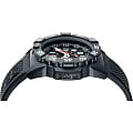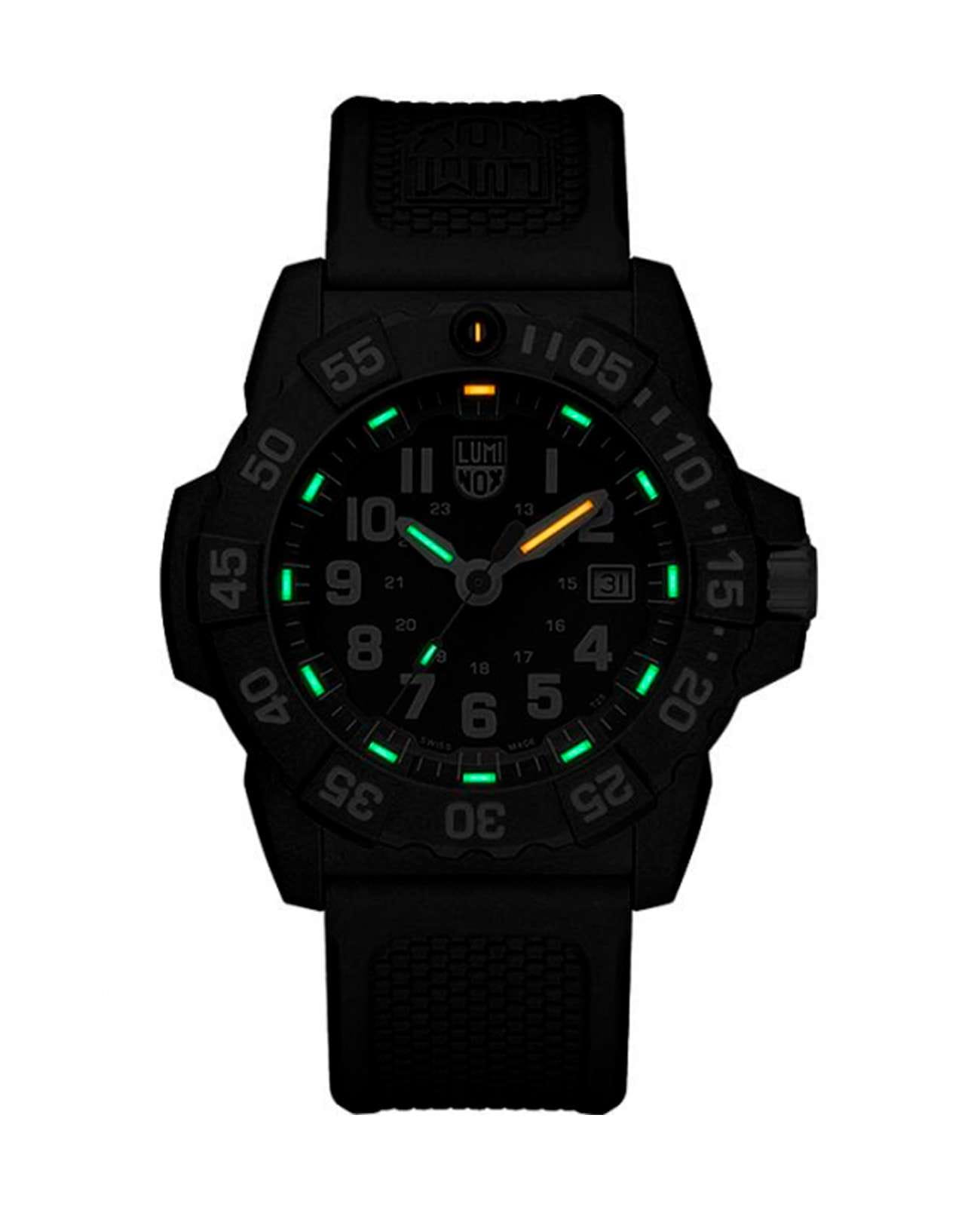 Мужские наручные часы Luminox XS.3501.F из коллекции Navy SEAL сочетают в себе спортивный дизайн и надежность швейцарского качества . Модель обладает круглым корпусом диаметром 45 мм, изготовленным из карбонаКарбонОт «carbon», «carbone» - углерод, углепластик - полимерный композиционный материал из переплетённых под определенным углом между собой нитей углеродного волокна, применяется для изготовления лёгких, но прочных деталей. В часах часто используют для украшения циферблатов и ремешков. Так же карбон используется в изготовлении корпусов. Такие корпуса обладают антикоррозионным свойством, не поддаются электромагнитному излучению, обладают повышенной прочностью и противоударностью. (CARBONOX™), что обеспечивает высокую устойчивость к внешним воздействиям при сохранении легкости . Циферблат черного цвета украшен контрастными метками и стрелками с , гарантирующим постоянную видимость времени даже в условиях низкой освещенности благодаря системе LLTLLTLLT — это автономный механизм подсветки, основанный на использовании микроскопических газонаполненных элементов. Специальные герметичные капсулы из боросиликатного стекла, интегрированные в циферблат, генерируют свечение без необходимости подключения к внешним источникам энергии. Для их работы не требуется ни дополнительный свет, ни механическое воздействие (например, нажатие кнопки). Свечение возникает благодаря химическому процессу: реакция между тритием, заключенным в капсулах, и люминофорным покрытием создает стабильное автономное освещение. Технология обеспечивает энергетическую независимость и долговечность подсветки. (микрогазовые огни) . Часы оснащены кварцевым механизмом швейцарского производства Ronda 715, обеспечивающим точность хода ±15 секунд в месяц . Защиту циферблата обеспечивает прочное минеральное стеклоМинеральное стеклоМинеральное стекло представляет собой искусственно выращенный минерал кварца. Такое стекло отличается особой устойчивостью к повреждениям и царапинам. Уступает по некоторым качествам сапфировому стеклу. с антибликовым покрытиемАнтибликовое покрытиеСлой оксида металла в 0,13-0,3 микрон, благодаря которому стекло часов не бликует и не отражает свет. Антибликовое покрытие уменьшает отражение света в 10 раз, обеспечивая отличную читаемость показателей циферблата., устойчивое к царапинам и механическим повреждениям . Водонепроницаемость модели достигает 20 атмосфер (200 метров), что делает их подходящими для плавания и активного отдыха на воде, включая дайвинг . Модель также оснащена безелемБезельВнешний ободок, закрепляющий стекло. В спортивных часах так называется поворотное кольцо с делениями на циферблате, выполняет роль таймера – замеряет отрезки времени на шкале. Неподвижный безель – элемент декора. Однонаправленно вращающийся безель на дайверских часах позволяет фиксировать моменты погружения и выныривания на поверхность. с односторонним вращением, что добавляет функциональности при использовании в водных условиях . Ремешок выполнен из черного полиуретана, что обеспечивает комфортное ношение в течение дня и удобство в уходе . Дополнительно часы имеют окно даты в положении «3 часа», что делает их практичными для повседневного использования .