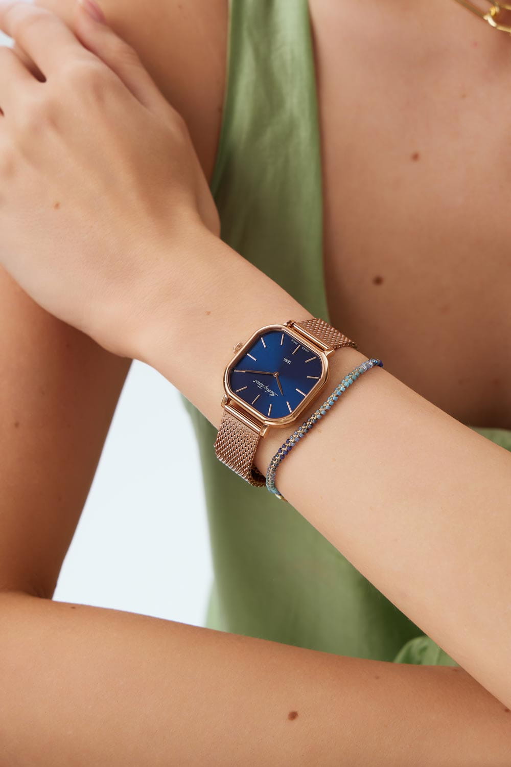 Женские кварцевые часы Mathey-Tissot Monsoon D7917PBU — это стильное сочетание элегантности и современного дизайна. Изящный корпус выполнен из нержавеющей стали с PVD-покрытиемPVDУльтратонкое покрытие наносится в технике вакуумного напыления, сочетает в себе нитрид титана особой прочности со слоем золота или оксида хрома. Несёт в себе декоративную или защитную функцию., размером 32х32 мм, что придаст образу элегантности и надежности. Изысканный циферблат с метками в виде штрихов придает модели особый блеск. Циферблат выполнен по технологии Sunray (солнечные лучи) и защищен минеральным стекломМинеральное стеклоМинеральное стекло представляет собой искусственно выращенный минерал кварца. Такое стекло отличается особой устойчивостью к повреждениям и царапинам. Уступает по некоторым качествам сапфировому стеклу. с сапфировым покрытием, обеспечивает устойчивость к царапинам. Часы оснащены надежным кварцевым механизмом. Стальной браслет с PVD-покрытиемPVDУльтратонкое покрытие наносится в технике вакуумного напыления, сочетает в себе нитрид титана особой прочности со слоем золота или оксида хрома. Несёт в себе декоративную или защитную функцию. миланского плетения на раскладном замкеРаскладная застёжкаТакой тип застёжки используется только на браслетах из металла. Она никогда не раскрывается полностью, происходит разделение на 2 и более частей. Раскладывающая застёжка снизит вероятность потери часов к минимуму., гарантирует комфортное и безопасное ношение. Класс водозащиты: 50 метров позволит защитить корпус от случайных брызг или капель дождя. Mathey-Tissot — отличный выбор для тех, кто ценит утонченность и качество.