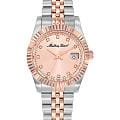 Женские кварцевые часы Mathey-Tissot Mathy D810RSAL — это стильное сочетание элегантности и современного дизайна. Изящный корпус выполнен из нержавеющей стали, диаметром 32 мм, что придаст образу женственности и романтизма. Изысканный циферблат с метками в виде точек украшены кристаллами, что придает модели особый блеск. Циферблат защищен минеральным стекломМинеральное стеклоМинеральное стекло представляет собой искусственно выращенный минерал кварца. Такое стекло отличается особой устойчивостью к повреждениям и царапинам. Уступает по некоторым качествам сапфировому стеклу., обеспечивающий устойчивость к царапинам. Стрелки с люминесцентным покрытиемЛюминесцентное покрытиеПозволяет считывать показания времени в темноте. Производители наносят на стрелки, часовые индексы, безель или поверхность циферблата светонакопительный состав, дающий холодное свечение.. БезельБезельВнешний ободок, закрепляющий стекло. В спортивных часах так называется поворотное кольцо с делениями на циферблате, выполняет роль таймера – замеряет отрезки времени на шкале. Неподвижный безель – элемент декора. Однонаправленно вращающийся безель на дайверских часах позволяет фиксировать моменты погружения и выныривания на поверхность. с PVD-покрытиемPVDУльтратонкое покрытие наносится в технике вакуумного напыления, сочетает в себе нитрид титана особой прочности со слоем золота или оксида хрома. Несёт в себе декоративную или защитную функцию. цвета розового золота. Окошко даты находится в положении 3 часа. Часы оснащены надежным кварцевым механизмом. Стальной браслет с частичным PVD-покрытиемPVDУльтратонкое покрытие наносится в технике вакуумного напыления, сочетает в себе нитрид титана особой прочности со слоем золота или оксида хрома. Несёт в себе декоративную или защитную функцию. на раскладной застёжкеРаскладная застёжкаТакой тип застёжки используется только на браслетах из металла. Она никогда не раскрывается полностью, происходит разделение на 2 и более частей. Раскладывающая застёжка снизит вероятность потери часов к минимуму., гарантирует комфортное и безопасное ношение. Класс водозащиты: 50 метров позволит защитить корпус от случайных брызг или капель дождя. Mathey-Tissot  — отличный выбор для тех, кто ценит утонченность и качество.