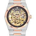 Мужские механические часы-скелетоны с автоподзаводом Mathey-Tissot Zeus H118CFRS — это стильное сочетание элегантности и современного дизайна. Изящный корпус выполнен из нержавеющей стали, диаметром 41 мм и толщиной 12 мм, что придаст образу элегантности и надежности. Изысканный циферблат с метками в виде штрихов придает модели особый блеск. Циферблат защищен сапфировым стекломСапфировое стеклоПрочный и надёжный материал из кристалла сапфира синтетического происхождения, характеризующийся особой твёрдостью и устойчивостью к царапинам и повреждениям., обеспечивающий устойчивость к царапинам. Стрелки с люминесцентным покрытиемЛюминесцентное покрытиеПозволяет считывать показания времени в темноте. Производители наносят на стрелки, часовые индексы, безель или поверхность циферблата светонакопительный состав, дающий холодное свечение. SuperLumiNova, которое светится в темноте после непродолжительной зарядки на свету. Неподвижный безельБезельВнешний ободок, закрепляющий стекло. В спортивных часах так называется поворотное кольцо с делениями на циферблате, выполняет роль таймера – замеряет отрезки времени на шкале. Неподвижный безель – элемент декора. Однонаправленно вращающийся безель на дайверских часах позволяет фиксировать моменты погружения и выныривания на поверхность. с PVD-покрытиемPVDУльтратонкое покрытие наносится в технике вакуумного напыления, сочетает в себе нитрид титана особой прочности со слоем золота или оксида хрома. Несёт в себе декоративную или защитную функцию. цвета розового золота. Стальной браслет с частичным PVD-покрытиемPVDУльтратонкое покрытие наносится в технике вакуумного напыления, сочетает в себе нитрид титана особой прочности со слоем золота или оксида хрома. Несёт в себе декоративную или защитную функцию. на застёжке-бабочке с кнопкамиЗастёжка "бабочка"Такой вид застёжки дополняется предохранителями, помогающими избежать случайного раскрытия браслета. Обладают изящным исполнением. , гарантирует комфортное и безопасное ношение. Класс водозащиты: 50 метров позволит защитить корпус от случайных брызг или капель дождя. Mathey-Tissot  — отличный выбор для тех, кто ценит утонченность и качество.
