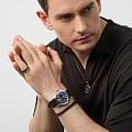 Мужские кварцевые часы Mathey-Tissot Mergulhador GMTGMTОтображение времени второго часового пояса.Такая функция особенно актуальна для путешественников и бизнесменов,которые общаются с людьми из разных стран,теперь вы всегда будете знать,какой час у вашего партнёра или близкого человека. MRGAN — это стильное сочетание элегантности и современного дизайна. Изящный корпус выполнен из нержавеющей стали, диаметром 41 мм, что придаст образу элегантности и надежности. Циферблат с метками в виде штрихов придает модели особый блеск. Циферблат защищен минеральным стекломМинеральное стеклоМинеральное стекло представляет собой искусственно выращенный минерал кварца. Такое стекло отличается особой устойчивостью к повреждениям и царапинам. Уступает по некоторым качествам сапфировому стеклу. с сапфировым покрытием, обеспечивает устойчивость к царапинам. Второй часовой поясВторой часовой поясФункция, позволяющая отображать время двух часовых поясов одновременно. в 24-х часовом формате времени отображается центральной стрелкой. Стрелки и метки с люминесцентным покрытиемЛюминесцентное покрытиеПозволяет считывать показания времени в темноте. Производители наносят на стрелки, часовые индексы, безель или поверхность циферблата светонакопительный состав, дающий холодное свечение. SuperLumiNova, которое светится в темноте после непродолжительной зарядки на свету. Окошко даты находится в положении 6 часов.  Рифленый безельБезельВнешний ободок, закрепляющий стекло. В спортивных часах так называется поворотное кольцо с делениями на циферблате, выполняет роль таймера – замеряет отрезки времени на шкале. Неподвижный безель – элемент декора. Однонаправленно вращающийся безель на дайверских часах позволяет фиксировать моменты погружения и выныривания на поверхность. с минутными отметками вращается в одном направлении. Часы оснащены надежным кварцевым механизмом. Кожаный ремешок на стандартной застёжке гарантирует комфортное и безопасное ношение. Класс водозащиты: 200 метров позволит плавать, нырять и заниматься другими водными видами спорта. Mathey-Tissot  — отличный выбор для тех, кто ценит утонченность и качество.