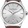 Maurice Lacroix 1975 Quartz 751007-SS001-130-3 — изящная модель в винтажном стиле с современным исполнением и безупречным вниманием к деталям. Корпус диаметром 39 мм изготовлен из нержавеющей стали с сочетанием полированной и сатинированной отделки. Элегантные пропорции подчёркнуты тонким профилем. Циферблат защищён сапфировым стекломСапфировое стеклоПрочный и надёжный материал из кристалла сапфира синтетического происхождения, характеризующийся особой твёрдостью и устойчивостью к царапинам и повреждениям. с двойным антибликовым покрытиемАнтибликовое покрытиеСлой оксида металла в 0,13-0,3 микрон, благодаря которому стекло часов не бликует и не отражает свет. Антибликовое покрытие уменьшает отражение света в 10 раз, обеспечивая отличную читаемость показателей циферблата., обеспечивающим высокую прозрачность. Белый циферблат с солнечным узором оформлен в духе 70-х годов: родиевые стрелки, скошенные индексы и окно даты на «3 часах». Внутри установлен швейцарский кварцевый механизм, отличающийся стабильностью и точностью. Модель на кожаном ремешке и стандартной застежке для надёжной и комфортной посадки. Водонепроницаемость до 100 метров делает часы практичными для ежедневного ношения. Maurice Lacroix 1975 — утончённая ретро-эстетика с акцентом на стиль и комфорт.