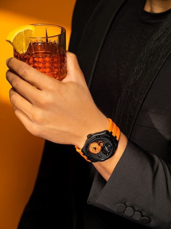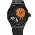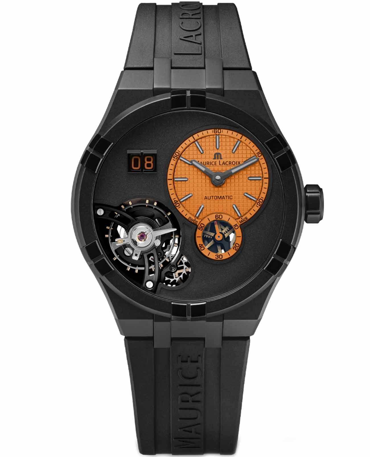 Швейцарские часы Maurice Lacroix Aikon Master Grand Date AI6118-DLB0J-530-J — это воплощение высоких стандартов часового искусства и современного стиля. В основе этого изысканного аксессуара лежит надежный механический механизм с автоподзаводом, калибр ML331, который обеспечивает точность и долговечность. Часы обладают запасом хода в 50 часов, а частота их работы составляет 18 000 полуколебаний в час. Корпус изготовлен из стали с высокотехнологичным DLC-покрытиемDLC-покрытиеDiamond like carbon - одно из лучших видов покрытия, представляющее собой углерод с алмазными свойствами. На поверхность материала наносятся распавшиеся молекулы углерода, превращающиеся в плёнку из алмазоподобных связей, которая перенимает твёрдость алмаза., придающим дополнительную прочность и стойкость к износу. Черно-оранжевый циферблат выделяется благодаря эффектному дизайну со смещенным центром, а также прозрачному окошку, через которое можно наблюдать за работой механизма. БезельБезельВнешний ободок, закрепляющий стекло. В спортивных часах так называется поворотное кольцо с делениями на циферблате, выполняет роль таймера – замеряет отрезки времени на шкале. Неподвижный безель – элемент декора. Однонаправленно вращающийся безель на дайверских часах позволяет фиксировать моменты погружения и выныривания на поверхность. привлекает внимание своим оригинальным дизайном из шести «когтей». Водозащита на уровне 100WR позволяет использовать часы в различных условиях, включая плавание. Стрелки и метки с люминесцентным покрытиемЛюминесцентное покрытиеПозволяет считывать показания времени в темноте. Производители наносят на стрелки, часовые индексы, безель или поверхность циферблата светонакопительный состав, дающий холодное свечение., что облегчает чтение времени даже в условиях слабого освещения. Сапфировое стеклоСапфировое стеклоПрочный и надёжный материал из кристалла сапфира синтетического происхождения, характеризующийся особой твёрдостью и устойчивостью к царапинам и повреждениям. с двойным антибликовым покрытиемАнтибликовое покрытиеСлой оксида металла в 0,13-0,3 микрон, благодаря которому стекло часов не бликует и не отражает свет. Антибликовое покрытие уменьшает отражение света в 10 раз, обеспечивая отличную читаемость показателей циферблата. защищает циферблат от царапин и бликов, а прозрачная задняя крышка из сапфирового стекла крепится на 7 винтах, позволяя наслаждаться видом внутреннего механизма. Часы также оснащены функцией большого календаря, расположенного на отметке 10 часов, и завинчивающейся заводной головкой, что добавляет надежности конструкции. Каучуковый ремешок с классической застежкой и системой быстрой замены обеспечивает комфорт и стильный внешний вид. В комплекте идет дополнительный сменный ремешок, что расширяет возможности для персонализации.