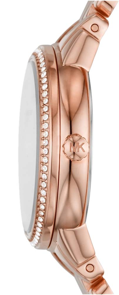 Часы Michael Kors являются атрибутом роскошного образа жизни, гармонично сочетая в себе практичность и невероятный модный дизайн. Несмотря на то, что аксессуар является представителем стиля fashion, дизайнеры не забыли о классических элементах оформления. Это привело к сохранению актуальности на множество сезонов вперёд. Брендовый аксессуар идеально дополнит ваш образ, он может как подчеркнуть ваши индивидуальные черты, так и наделить офисный костюм нотками оригинальности. Наручные часы комплектуются японскими механизмами, отличающиеся надёжностью и высокой точностью хода. Для защиты циферблата используется минеральное стекло, устойчивое к образованию царапин.