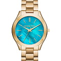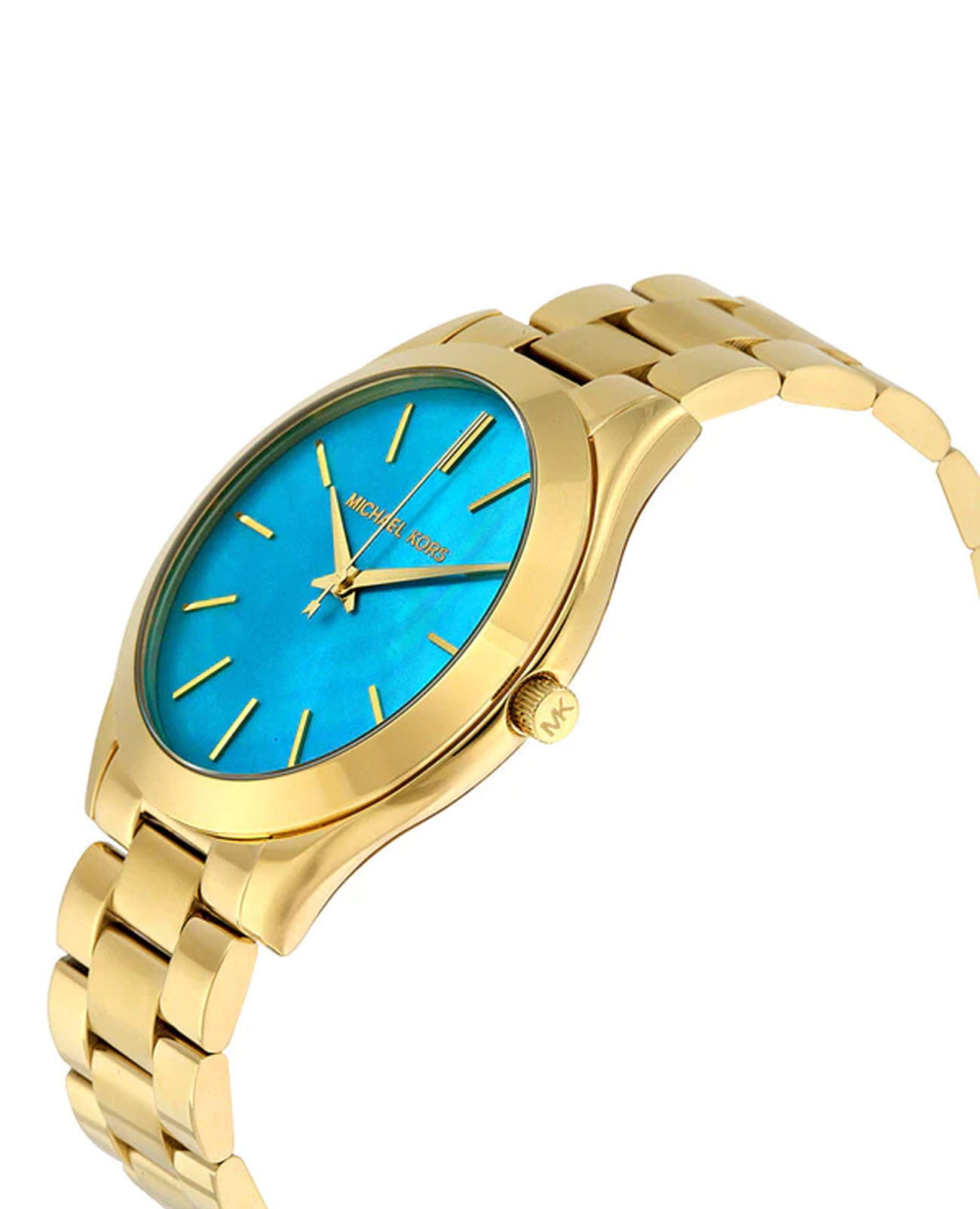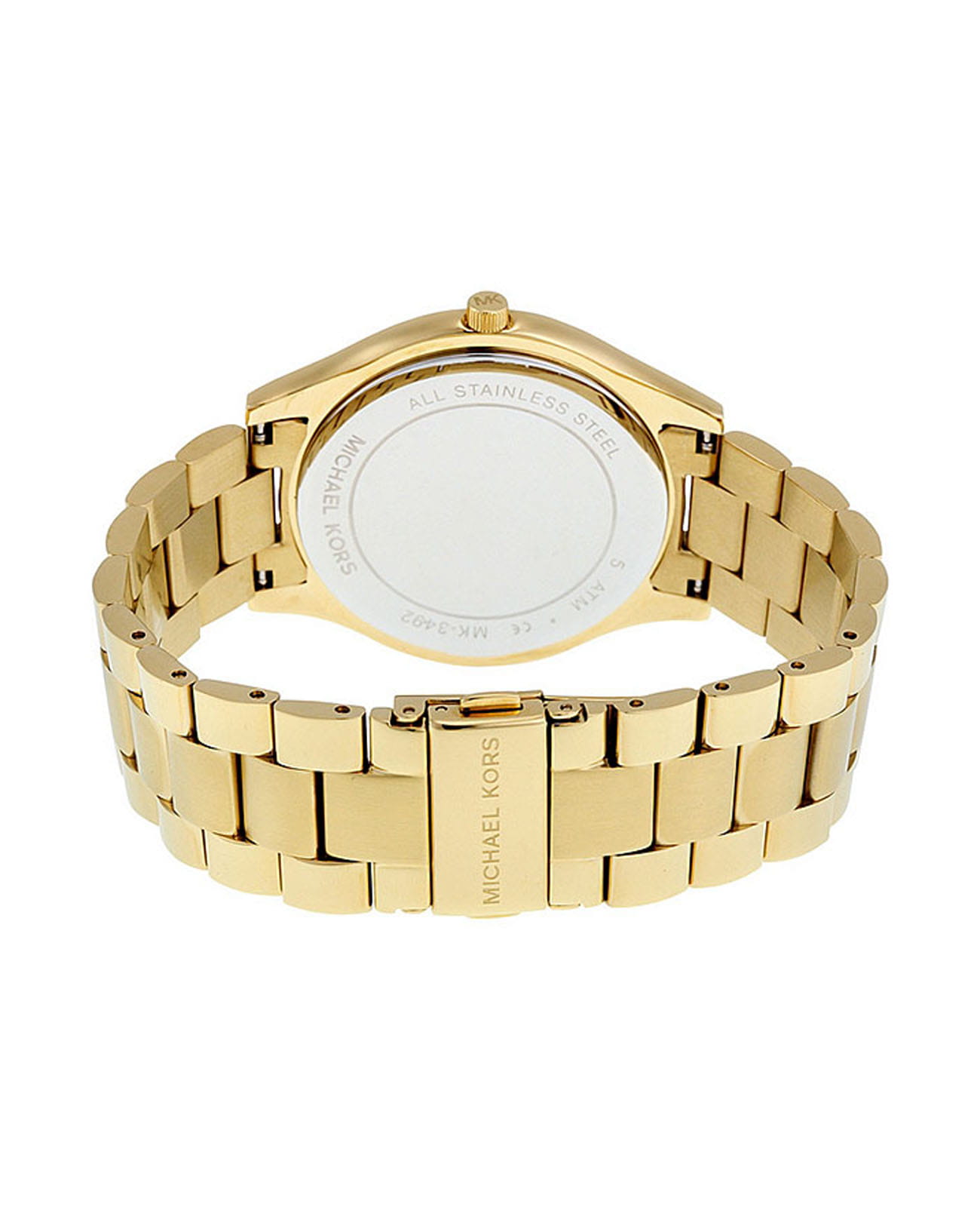 Женские американские часы Michael Kors Slim Runway MK3492, кварцевый механизм с высокой точностью. Минеральное стеклоМинеральное стеклоМинеральное стекло представляет собой искусственно выращенный минерал кварца. Такое стекло отличается особой устойчивостью к повреждениям и царапинам. Уступает по некоторым качествам сапфировому стеклу., устойчивое к мелким механическим повреждениям. Корпус часов выполнен из нержавеющей стали с PVD-покрытиемPVDУльтратонкое покрытие наносится в технике вакуумного напыления, сочетает в себе нитрид титана особой прочности со слоем золота или оксида хрома. Несёт в себе декоративную или защитную функцию.. Класс водозащиты: 50 метров, позволит защитить корпус от случайных брызг или капель дождя. Стальной браслет с PVD-покрытиемPVDУльтратонкое покрытие наносится в технике вакуумного напыления, сочетает в себе нитрид титана особой прочности со слоем золота или оксида хрома. Несёт в себе декоративную или защитную функцию. на раскладной застёжкеРаскладная застёжкаТакой тип застёжки используется только на браслетах из металла. Она никогда не раскрывается полностью, происходит разделение на 2 и более частей. Раскладывающая застёжка снизит вероятность потери часов к минимуму..