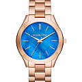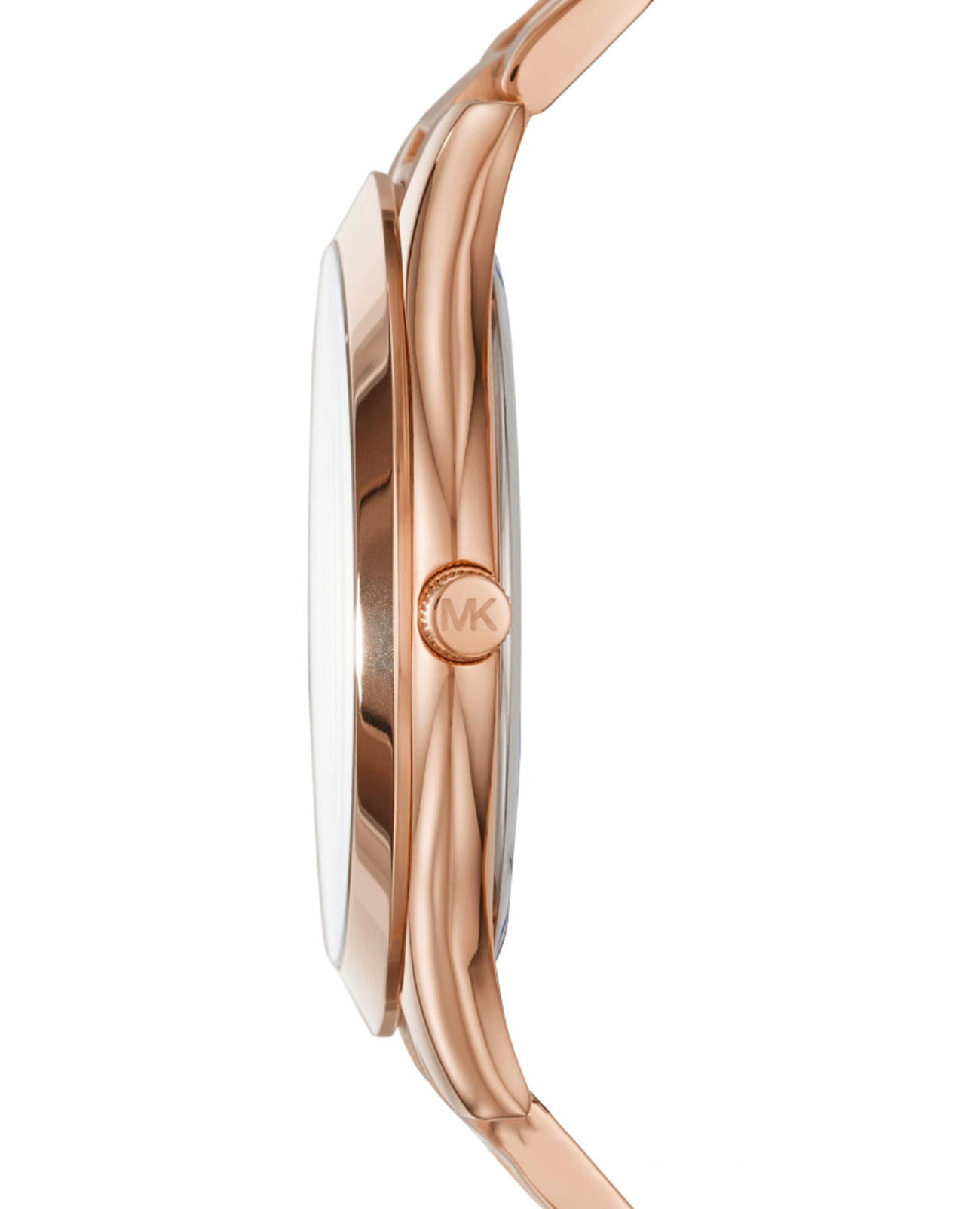 Женские американские часы Michael Kors Slim Runway MK3494, кварцевый механизм с высокой точностью. Минеральное стеклоМинеральное стеклоМинеральное стекло представляет собой искусственно выращенный минерал кварца. Такое стекло отличается особой устойчивостью к повреждениям и царапинам. Уступает по некоторым качествам сапфировому стеклу., устойчивое к мелким механическим повреждениям. Корпус часов выполнен из нержавеющей стали с PVD-покрытиемPVDУльтратонкое покрытие наносится в технике вакуумного напыления, сочетает в себе нитрид титана особой прочности со слоем золота или оксида хрома. Несёт в себе декоративную или защитную функцию.. Класс водозащиты: 50 метров, позволит защитить корпус от случайных брызг или капель дождя. Стальной браслет с PVD-покрытиемPVDУльтратонкое покрытие наносится в технике вакуумного напыления, сочетает в себе нитрид титана особой прочности со слоем золота или оксида хрома. Несёт в себе декоративную или защитную функцию. на раскладной застёжкеРаскладная застёжкаТакой тип застёжки используется только на браслетах из металла. Она никогда не раскрывается полностью, происходит разделение на 2 и более частей. Раскладывающая застёжка снизит вероятность потери часов к минимуму..