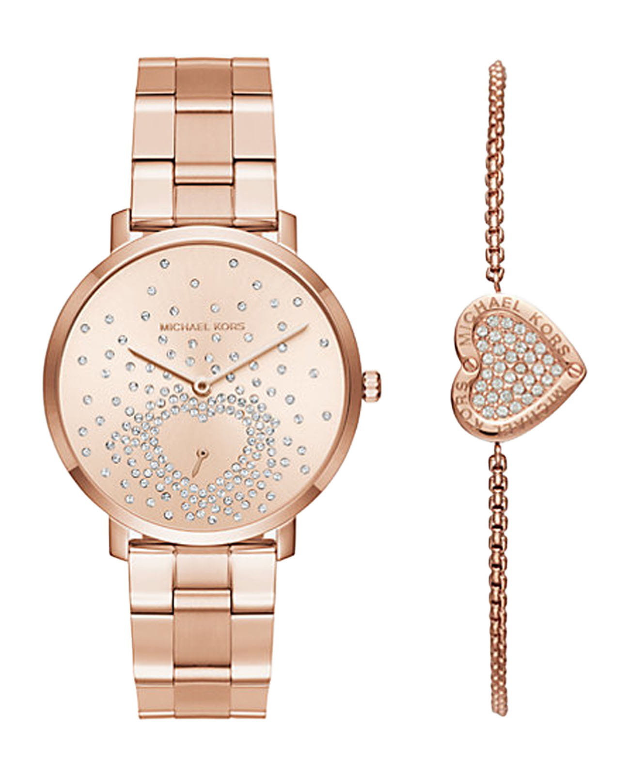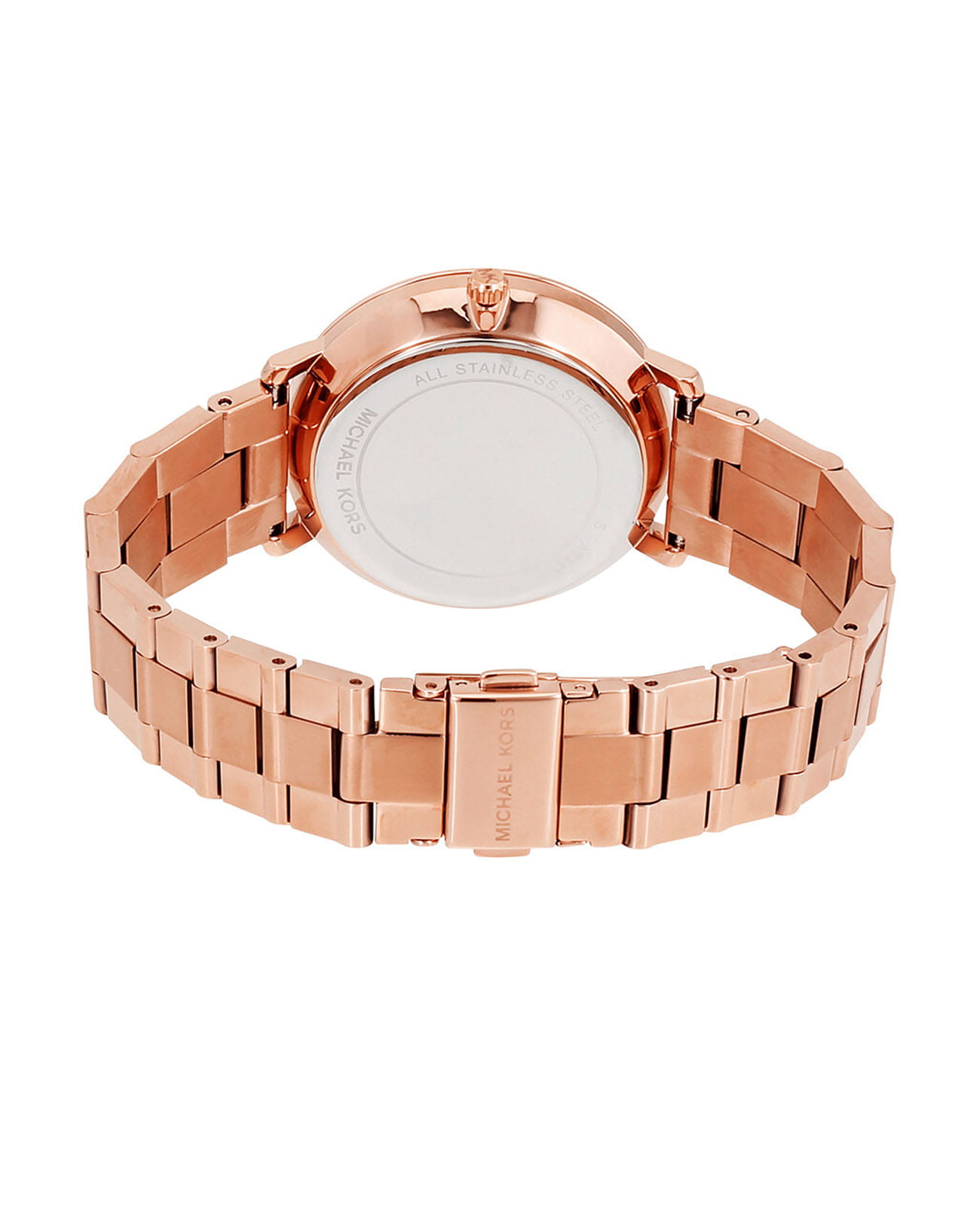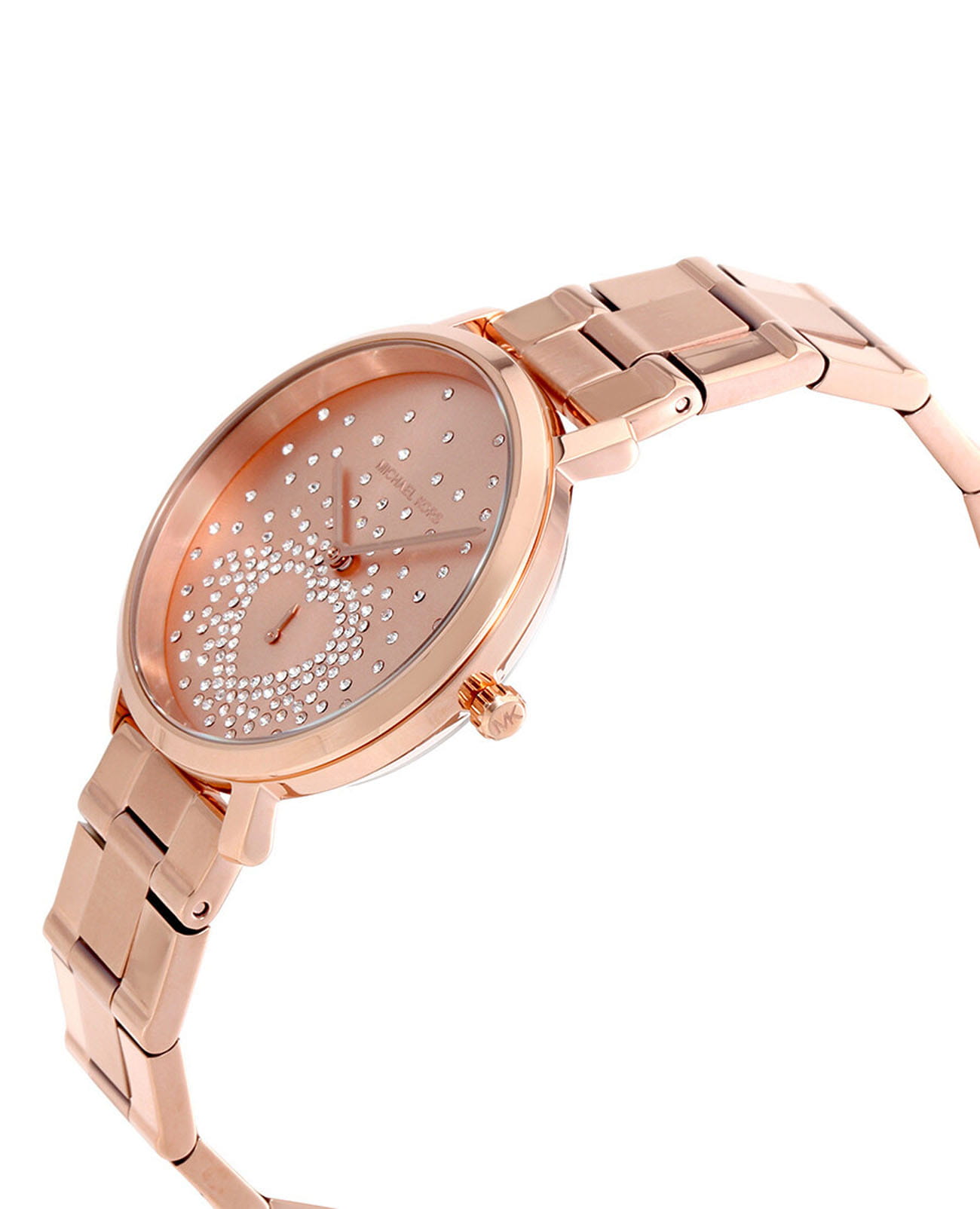 Женские американские часы Michael Kors Jaryn MK3621, кварцевый механизм с высокой точностью. Минеральное стеклоМинеральное стеклоМинеральное стекло представляет собой искусственно выращенный минерал кварца. Такое стекло отличается особой устойчивостью к повреждениям и царапинам. Уступает по некоторым качествам сапфировому стеклу., устойчивое к мелким механическим повреждениям. Корпус часов выполнен из нержавеющей стали с PVD-покрытиемPVDУльтратонкое покрытие наносится в технике вакуумного напыления, сочетает в себе нитрид титана особой прочности со слоем золота или оксида хрома. Несёт в себе декоративную или защитную функцию.. Циферблат украшен кристаллами. Класс водозащиты: 50 метров, позволит защитить корпус от случайных брызг или капель дождя. Стальной браслет с PVD-покрытиемPVDУльтратонкое покрытие наносится в технике вакуумного напыления, сочетает в себе нитрид титана особой прочности со слоем золота или оксида хрома. Несёт в себе декоративную или защитную функцию. на раскладной застёжкеРаскладная застёжкаТакой тип застёжки используется только на браслетах из металла. Она никогда не раскрывается полностью, происходит разделение на 2 и более частей. Раскладывающая застёжка снизит вероятность потери часов к минимуму..