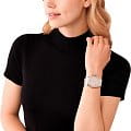 Женские американские часы с секундомеромСекундомерСекундоме́р — прибор, способный измерять интервалы времени с точностью до долей секунды. и с минеральным стекломМинеральное стеклоМинеральное стекло представляет собой искусственно выращенный минерал кварца. Такое стекло отличается особой устойчивостью к повреждениям и царапинам. Уступает по некоторым качествам сапфировому стеклу. Michael Kors Everest MK7402, кварцевый механизм с высокой точностью. Корпус часов изготовлен из нержавеющей стали. БезельБезельВнешний ободок, закрепляющий стекло. В спортивных часах так называется поворотное кольцо с делениями на циферблате, выполняет роль таймера – замеряет отрезки времени на шкале. Неподвижный безель – элемент декора. Однонаправленно вращающийся безель на дайверских часах позволяет фиксировать моменты погружения и выныривания на поверхность. и циферблат украшены кристаллами. Метки в виде штрихов и римских цифр. Секундная стрелка вынесена на малый циферблат. Метки с люминесцентным покрытиемЛюминесцентное покрытиеПозволяет считывать показания времени в темноте. Производители наносят на стрелки, часовые индексы, безель или поверхность циферблата светонакопительный состав, дающий холодное свечение.. Заводная головка с защитой. Класс водозащиты: 50 метров, позволит защитить корпус от случайных брызг или капель дождя. Стальной браслет с частичным PVD-покрытиемPVDУльтратонкое покрытие наносится в технике вакуумного напыления, сочетает в себе нитрид титана особой прочности со слоем золота или оксида хрома. Несёт в себе декоративную или защитную функцию. на раскладной застёжкеРаскладная застёжкаТакой тип застёжки используется только на браслетах из металла. Она никогда не раскрывается полностью, происходит разделение на 2 и более частей. Раскладывающая застёжка снизит вероятность потери часов к минимуму..