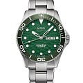 Часы MIDO Ocean Star 200C (артикул M042.430.11.091.00) сочетают элегантный дизайн и высокую функциональность, подходя как для повседневного ношения, так и для водных приключений. Корпус диаметром 42,5 мм выполнен из нержавеющей стали с водозащитой до 20 бар (200 метров). Однонаправленная вращающаяся безель, завинчивающаяся заводная головка и задняя крышка подчёркивают практичность. Зелёный циферблат с волнообразным узором оснащён накладными часовыми метками и стрелками с покрытием Super-LumiNova®Люминесцентное покрытиеПозволяет считывать показания времени в темноте. Производители наносят на стрелки, часовые индексы, безель или поверхность циферблата светонакопительный состав, дающий холодное свечение.. Окошки даты и дня недели расположены в положении «3 часа». Циферблат защищён сапфировым стекломСапфировое стеклоПрочный и надёжный материал из кристалла сапфира синтетического происхождения, характеризующийся особой твёрдостью и устойчивостью к царапинам и повреждениям. с двусторонним антибликовым покрытием.