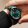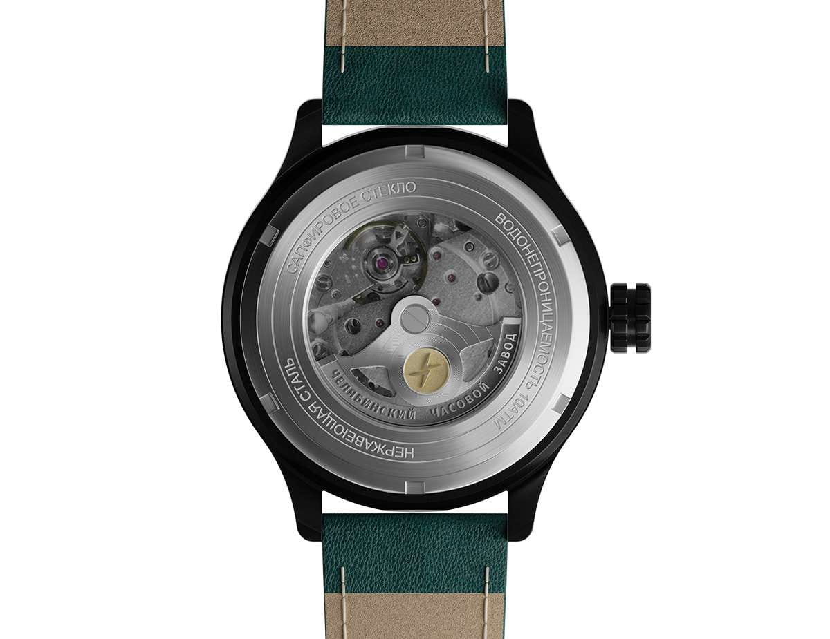 Мужские механические часы с автоподзаводом — это надёжный аксессуар от легендарного бренда «МОЛНИЯ», созданного на Челябинском часовом заводе. Корпус диаметром 44 мм и высотой 12 мм выполнен из нержавеющей стали 316L с IP-покрытиемIP-покрытиеМетод ионного напыления. Демонстрирует повышенную устойчивость к истиранию, окислению и химическим веществам. Под воздействием высокого давления и температуры около 1500°C молекулы металла надёжно соединяются с частицами корпуса часов.. Циферблат зелёного цвета матовый, оформлен стрелками и индексами с люминесцентным покрытиемЛюминесцентное покрытиеПозволяет считывать показания времени в темноте. Производители наносят на стрелки, часовые индексы, безель или поверхность циферблата светонакопительный состав, дающий холодное свечение. Super-LumiNova. Окошко даты расположено в положении 3 часов. Циферблат защищён сапфировым стекломСапфировое стеклоПрочный и надёжный материал из кристалла сапфира синтетического происхождения, характеризующийся особой твёрдостью и устойчивостью к царапинам и повреждениям. толщиной 1,5 мм. Механизм — японский автоматический калибр Miyota 8215 с функцией и запасом хода 42 часа. Часы оснащены кожаным ремешком зелёного цвета шириной 22 мм с классической пряжкой. Водонепроницаемость 100 м позволяет использовать часы для плавания и повседневного ношения. Идеальный выбор для тех, кто ценит российское качество и мужественный дизайн.