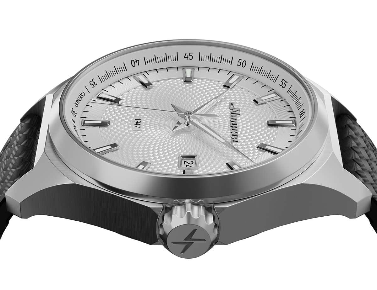 Мужские механические часы с автоподзаводом — это надёжный аксессуар от легендарного бренда «МОЛНИЯ», созданный на Челябинском часовом заводе. Корпус диаметром 42 мм выполнен из нержавеющей стали 316L с зеркальной полировкой. БезельБезельВнешний ободок, закрепляющий стекло. В спортивных часах так называется поворотное кольцо с делениями на циферблате, выполняет роль таймера – замеряет отрезки времени на шкале. Неподвижный безель – элемент декора. Однонаправленно вращающийся безель на дайверских часах позволяет фиксировать моменты погружения и выныривания на поверхность. также выполнен из стали с зеркальной отделкой. Циферблат белого цвета оформлен индексами и стрелками. Окошко даты расположено в положении 3 часов. Стрелки и метки с люминесцентным покрытиемЛюминесцентное покрытиеПозволяет считывать показания времени в темноте. Производители наносят на стрелки, часовые индексы, безель или поверхность циферблата светонакопительный состав, дающий холодное свечение. Super-LumiNova, обеспечивающим хорошую читаемость в темноте. Циферблат защищён сапфировым стекломСапфировое стеклоПрочный и надёжный материал из кристалла сапфира синтетического происхождения, характеризующийся особой твёрдостью и устойчивостью к царапинам и повреждениям. с антибликовым покрытиемАнтибликовое покрытиеСлой оксида металла в 0,13-0,3 микрон, благодаря которому стекло часов не бликует и не отражает свет. Антибликовое покрытие уменьшает отражение света в 10 раз, обеспечивая отличную читаемость показателей циферблата.. Механизм — японский автоматический калибр Miyota 8215 с функцией и запасом хода до 42 часов. Прозрачная задняя крышка позволяет наблюдать за работой механизма с кастомным ротором. Часы оснащены кожаным ремешком чёрного цвета с подкладкой из фтористого каучука и классической пряжкой, а также системой быстрой замены. Водонепроницаемость 100 м позволяет использовать часы для плавания и повседневного ношения. Идеальный выбор для тех, кто ценит качество, точность и стиль.