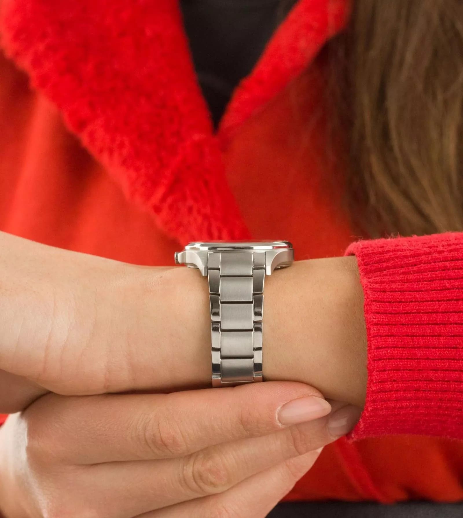 Женские датские наручные часы с минеральным стекломМинеральное стеклоМинеральное стекло представляет собой искусственно выращенный минерал кварца. Такое стекло отличается особой устойчивостью к повреждениям и царапинам. Уступает по некоторым качествам сапфировому стеклу. Obaku Link V272LDTBST, кварцевый механизм с высокой точностью. Класс водозащиты: 30 метров, позволит защитить корпус от случайных брызг или капель дождя. Корпус часов изготовлен из титана. Титановый браслет на раскладной застёжкеРаскладная застёжкаТакой тип застёжки используется только на браслетах из металла. Она никогда не раскрывается полностью, происходит разделение на 2 и более частей. Раскладывающая застёжка снизит вероятность потери часов к минимуму. шириной 18 мм. Заводная головка с защитой. Арабская индикация времени. Окошко даты находятся в положении 3 часа.