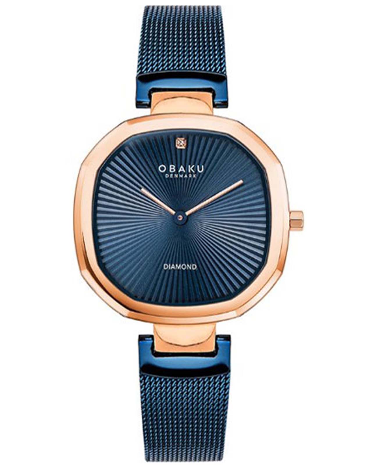 Женские наручные кварцевые часы с минеральным стекломМинеральное стеклоМинеральное стекло представляет собой искусственно выращенный минерал кварца. Такое стекло отличается особой устойчивостью к повреждениям и царапинам. Уступает по некоторым качествам сапфировому стеклу. Obaku Diamond V277LXVLML, кварцевый механизм с высокой точностью. Класс водозащиты: 30 метров, позволит защитить корпус от случайных брызг или капель дождя. Корпус часов изготовлен из стали с IP-покрытиемIP-покрытиеМетод ионного напыления. Демонстрирует повышенную устойчивость к истиранию, окислению и химическим веществам. Под воздействием высокого давления и температуры около 1500°C молекулы металла надёжно соединяются с частицами корпуса часов.. Стальной браслет выполнен в технике миланского плетения с IP-покрытиемIP-покрытиеМетод ионного напыления. Демонстрирует повышенную устойчивость к истиранию, окислению и химическим веществам. Под воздействием высокого давления и температуры около 1500°C молекулы металла надёжно соединяются с частицами корпуса часов. на раскладной застёжкеРаскладная застёжкаТакой тип застёжки используется только на браслетах из металла. Она никогда не раскрывается полностью, происходит разделение на 2 и более частей. Раскладывающая застёжка снизит вероятность потери часов к минимуму.. Синий циферблат декорирован бриллиантом.