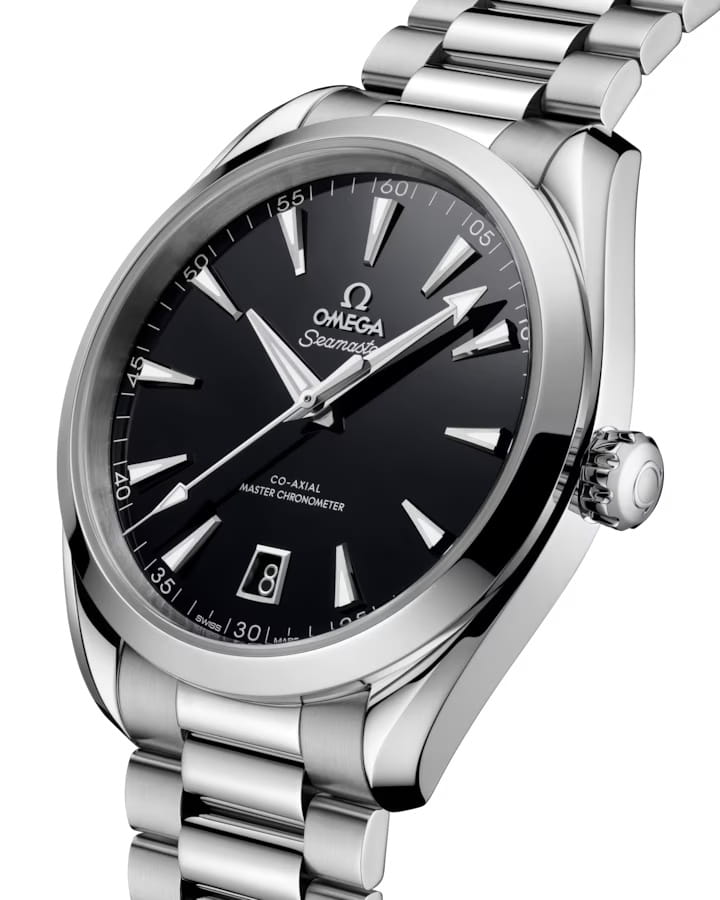 Omega Seamaster Aqua Terra выполнены в симметричном корпусе из нержавеющей стали с завинчивающейся задней крышкой, украшенной волновым узором. Циферблат дополнен окошком даты на 6 часах и логотипом OMEGA с родиевой отделкой и алмазной полировкой. Стрелки и метки оснащены люминесцентным покрытиемЛюминесцентное покрытиеПозволяет считывать показания времени в темноте. Производители наносят на стрелки, часовые индексы, безель или поверхность циферблата светонакопительный состав, дающий холодное свечение. Super-LumiNova для лучшей читаемости в темноте. Калибр Omega 8900 сертифицирован как Master Chronometer — гарантия высочайшей точности и устойчивости к магнитным полям. Запас хода составляет 60 часов. Защиту циферблата обеспечивает сапфировое стеклоСапфировое стеклоПрочный и надёжный материал из кристалла сапфира синтетического происхождения, характеризующийся особой твёрдостью и устойчивостью к царапинам и повреждениям. с антибликовым покрытиемАнтибликовое покрытиеСлой оксида металла в 0,13-0,3 микрон, благодаря которому стекло часов не бликует и не отражает свет. Антибликовое покрытие уменьшает отражение света в 10 раз, обеспечивая отличную читаемость показателей циферблата. с обеих сторон. Водозащита позволяет использовать часы в воде без риска повреждения. Диаметр корпуса — 41 мм, между "ушками" - 20 мм толщина — 13.4 мм, общая длина между "ушками" — 48.0 мм. Часы установлены на интегрированный браслет с полированными и матовыми звеньями. Вес модели — около 148 грамм. Это сочетание премиального качества, технологичности и классического дизайна.