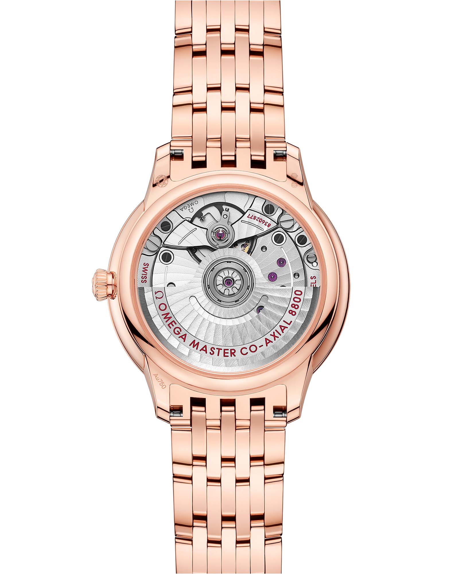 . Модель оснащена калибром OMEGA Master Co-Axial 8800, который виден сквозь устойчивое к царапинам сапфировое стеклоСапфировое стеклоПрочный и надёжный материал из кристалла сапфира синтетического происхождения, характеризующийся особой твёрдостью и устойчивостью к царапинам и повреждениям. задней крышки корпуса.