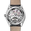 De Ville Trésor — возрожденная классика 1949 года, где винтажная элегантность встречается с современными технологиями. 40-мм корпус из нержавеющей стали с черным кожаным ремешком продолжает традиции утонченного дизайна. Опалово-серебристый циферблат с волшебным мерцанием украшен стрелками и индексами из белого золота18-каратное золотоОбозначение по каратной системе пробирования, оно показывает, сколько драгоценного металла содержится в изделии. 18 карат - в составе 75% чистого золота, соответствует 750 пробе.