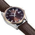 Orient Classic Automatic RA-AC0R03Y – элегантные механические часы, сочетающие классический дизайн и современные технологии. Корпус диаметром 38,5 мм выполнен из нержавеющей стали, обеспечивая долговечность и стильный внешний вид. Серебристый с лаконичными метками и стрелками защищён сапфировым стекломСапфировое стеклоПрочный и надёжный материал из кристалла сапфира синтетического происхождения, характеризующийся особой твёрдостью и устойчивостью к царапинам и повреждениям., устойчивым к царапинам. БезельБезельВнешний ободок, закрепляющий стекло. В спортивных часах так называется поворотное кольцо с делениями на циферблате, выполняет роль таймера – замеряет отрезки времени на шкале. Неподвижный безель – элемент декора. Однонаправленно вращающийся безель на дайверских часах позволяет фиксировать моменты погружения и выныривания на поверхность. с PVD-покрытиемPVDУльтратонкое покрытие наносится в технике вакуумного напыления, сочетает в себе нитрид титана особой прочности со слоем золота или оксида хрома. Несёт в себе декоративную или защитную функцию.. Часы оснащены автоматическим механизмом Orient с калибром F6722. Функциональность включает индикацию даты, расположенной в окне на отметке «3 часа». Водозащита до 50 метров (5 бар) делает модель подходящей для повседневного использования, защищая её от случайных брызг. Часы с люминесцентным покрытиемЛюминесцентное покрытиеПозволяет считывать показания времени в темноте. Производители наносят на стрелки, часовые индексы, безель или поверхность циферблата светонакопительный состав, дающий холодное свечение., обеспечивающими мгновенное считывание времени даже в темноте. Кожаный ремешок на стандартной застежке, обеспечивающей комфортное ношение и надёжную фиксацию на запястье.