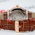 Часы Orient RA-AK0801S из коллекции Sun & Moon — элегантная модель с классическим дизайном и продуманной функциональностью. Корпус диаметром 41,5 мм выполнен из нержавеющей стали с изысканным PVD-покрытиемPVDУльтратонкое покрытие наносится в технике вакуумного напыления, сочетает в себе нитрид титана особой прочности со слоем золота или оксида хрома. Несёт в себе декоративную или защитную функцию. розового золота, а выпуклое минеральное стеклоМинеральное стеклоМинеральное стекло представляет собой искусственно выращенный минерал кварца. Такое стекло отличается особой устойчивостью к повреждениям и царапинам. Уступает по некоторым качествам сапфировому стеклу. защищает циферблат от царапин. Белый циферблат украшен римскими цифрами и стрелками в тон корпуса. На «10 часах» расположен индикатор дня недели, а на «4 часах» — индикатор смены дня и ночи «Солнце и Луна». Окошко даты на «3 часах» добавляет практичности и завершает функционал. Автоматический механизм Orient Calibre F6B24 поддерживает ручной завод и функцию остановки секундной стрелки. Запас хода до 40 часов гарантирует надёжную работу в течение длительного времени. Коричневый кожаный ремешок с текстурой под крокодила и стандартной застежке, обеспечивает комфортное ношение и надёжную фиксацию. Водонепроницаемость до 30 метров защищает часы от случайных брызг. Orient RA-AK0801S — это идеальный выбор для тех, кто ценит японское качество, элегантный стиль и функциональность.